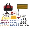 Das Set enthält alle notwendigen Werkzeuge zum Ausbeulen von Dellen, wie z. B. eine Reflektorplatte, eine Klebepistole, einen Dellenauszieher, Ausbeulhämmer usw. Mit diesem Set kannst du Dellen fast überall und an jedem Fahrzeug entfernen.
