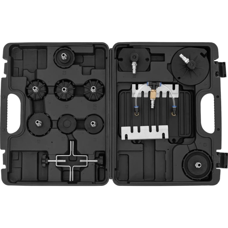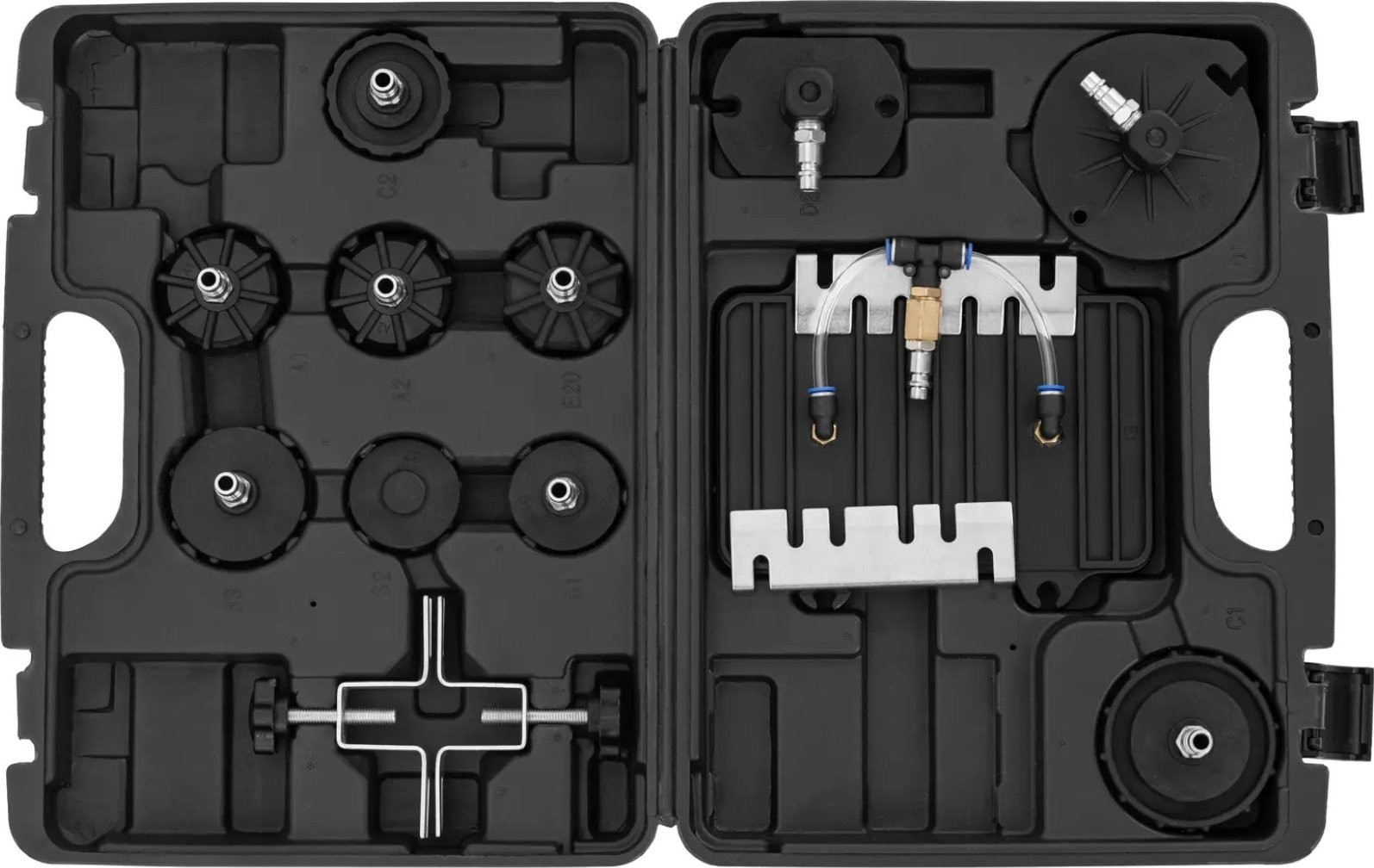 Dieses Set ist ein vielseitiges Werkzeug, das sich in der Kfz-Branche bewährt, insbesondere beim Wechsel der Bremsflüssigkeit. Dank seiner Vielseitigkeit kann es in verschiedenen Fahrzeugtypen eingesetzt werden, was es zu einem unverzichtbaren Bestandteil der Ausrüstung jedes Mechanikers macht.