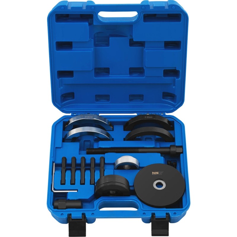 Der MSW -Lagerabzieher ist ein Werkzeugsatz für die sichere Montage und Demontage der Vorder- und Hinterradnabenlager bei Volkswagen T5 und Touareg (85 mm) mit 16-Zoll-Felgen . Die Handhabung erfordert keinen großen Kraftaufwand und spart Zeit. Das Produkt erfordert weder die Demontage von Fahrwerkskomponenten noch eine Achsvermessung. Es eignet sich hervorragend für den professionellen Einsatz in Kfz-Werkstätten und Fahrzeugservicebetrieben. Die Ausführung aus oxidiertem Kohlenstoffstahl macht die Werkzeuge langlebig und korrosionsbeständig. Sie zeichnen sich durch eine lange Lebensdauer aus. Der Lagerabzieher wird in einem praktischen Koffer geliefert. Das