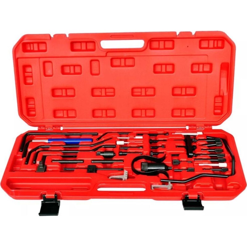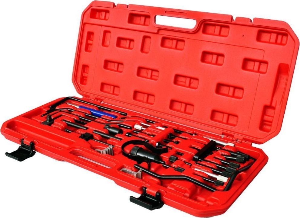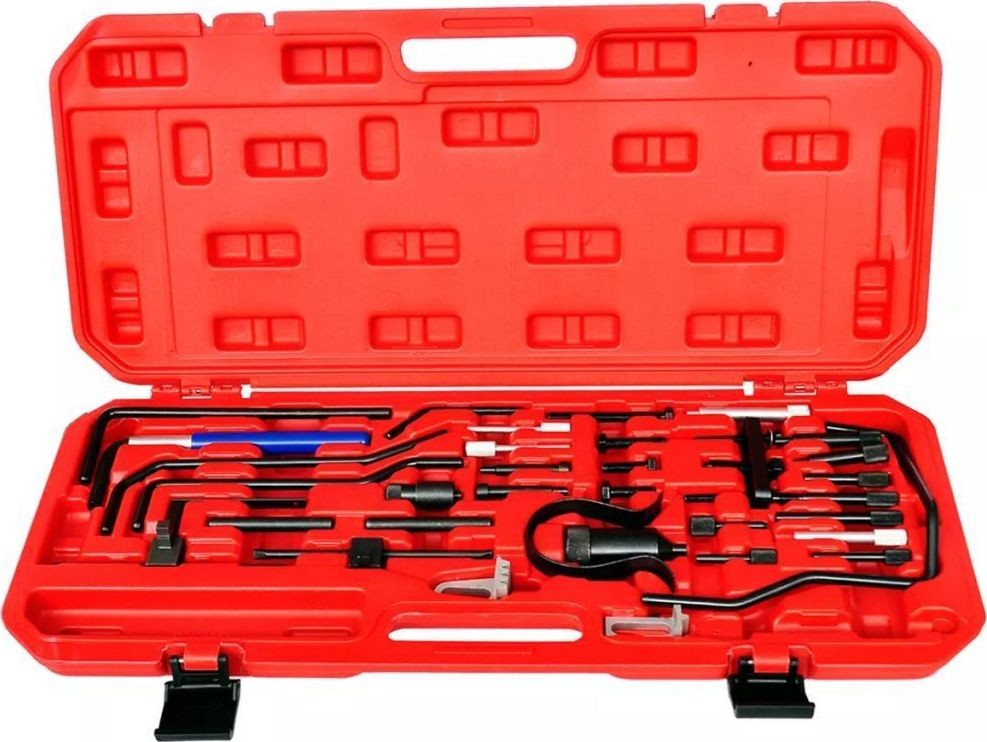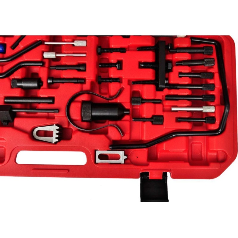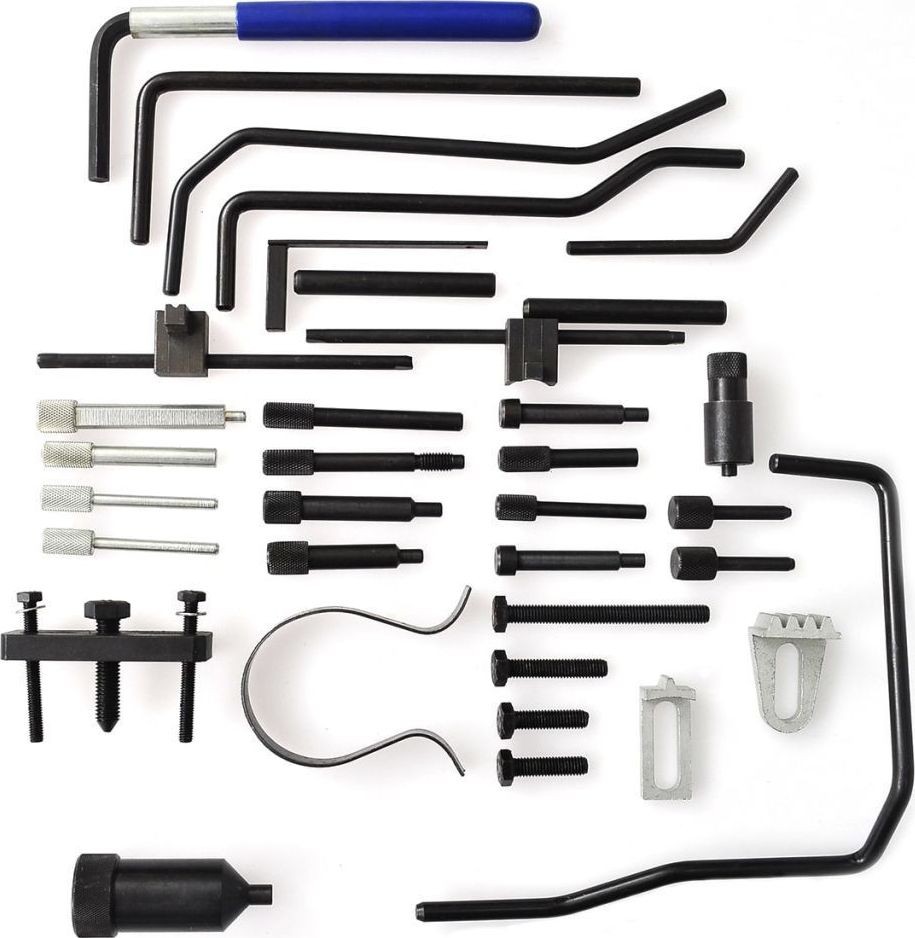 Dieser Satz von Werkzeugen für den Motor-Steuerungsmechanismus eignet sich für den Einsatz in den neuesten Fahrzeugen mit HP- (Benzin-) oder HDI-Motoren (Diesel). Er eignet sich für Fahrzeuge der Marken Peugeot und Citroën zum Arretieren des Schwungrads / der Nockenwelle / der Kurbelwelle, zum Aus- und Einbau der Einspritzpumpe und der Wasserpumpe sowie zum Austausch des Zahnriemens usw.