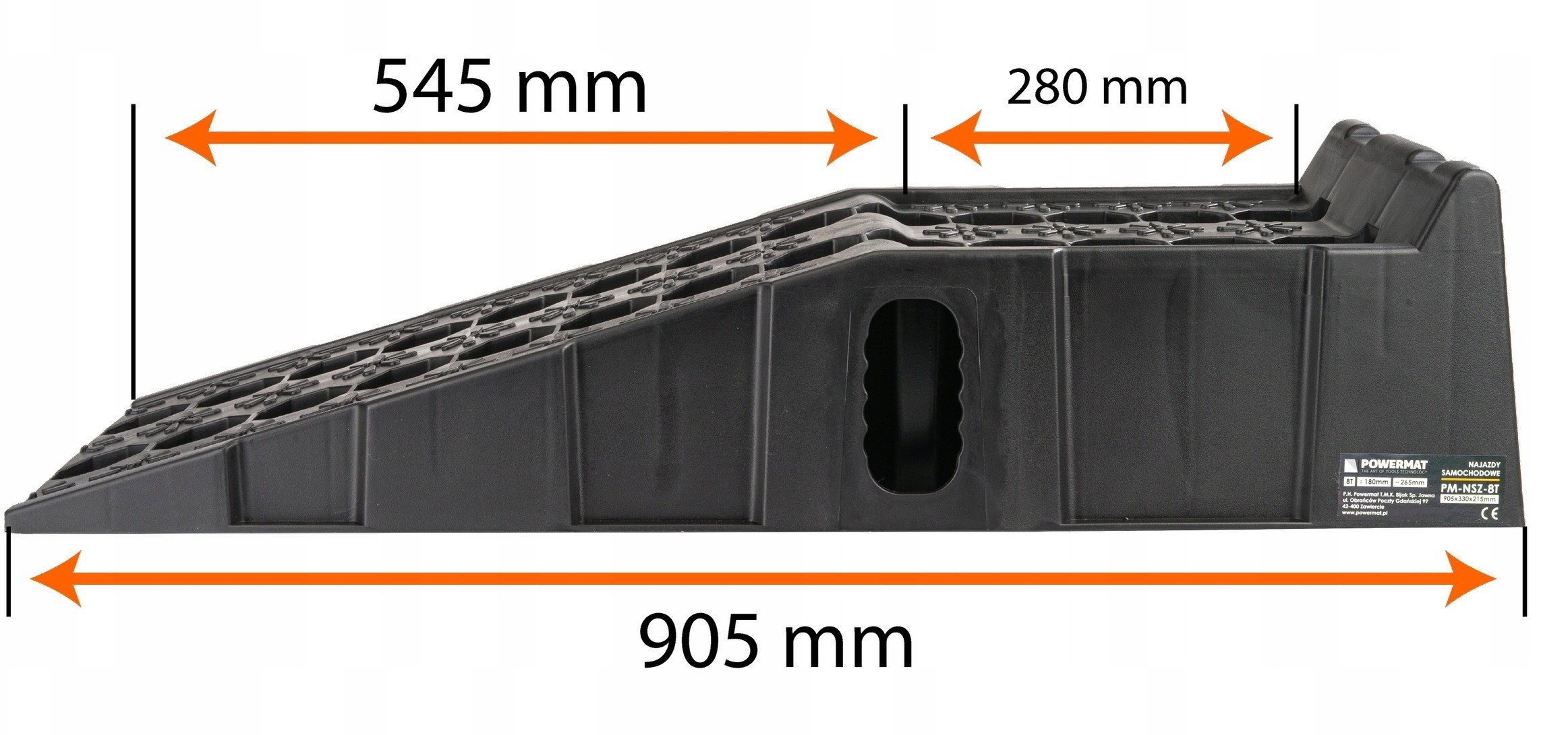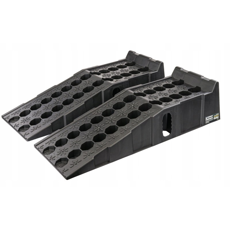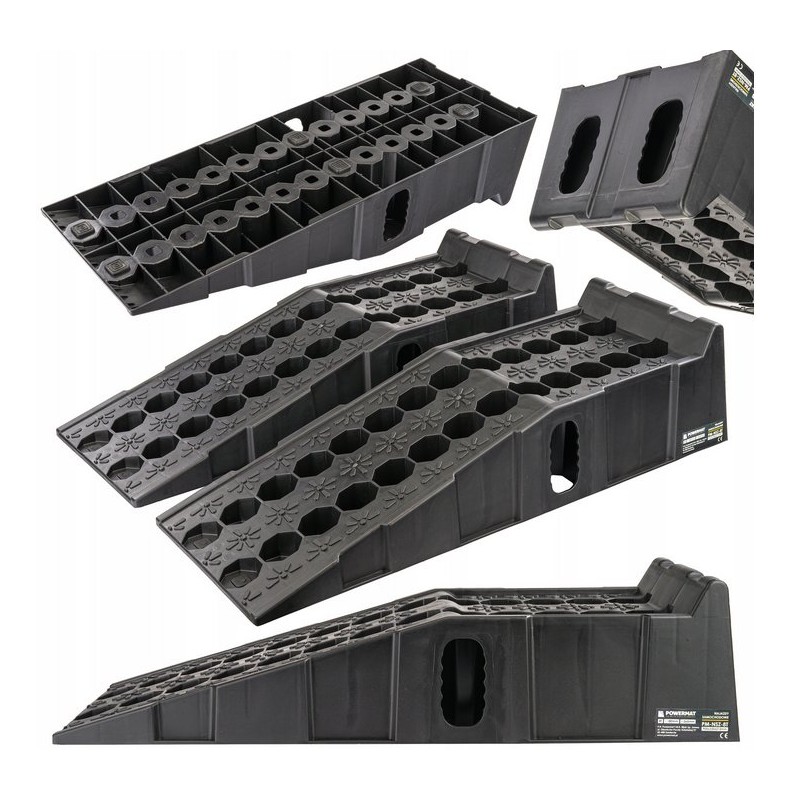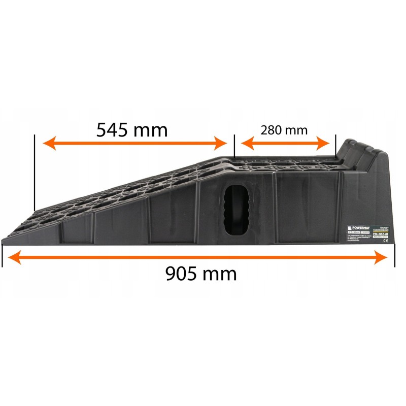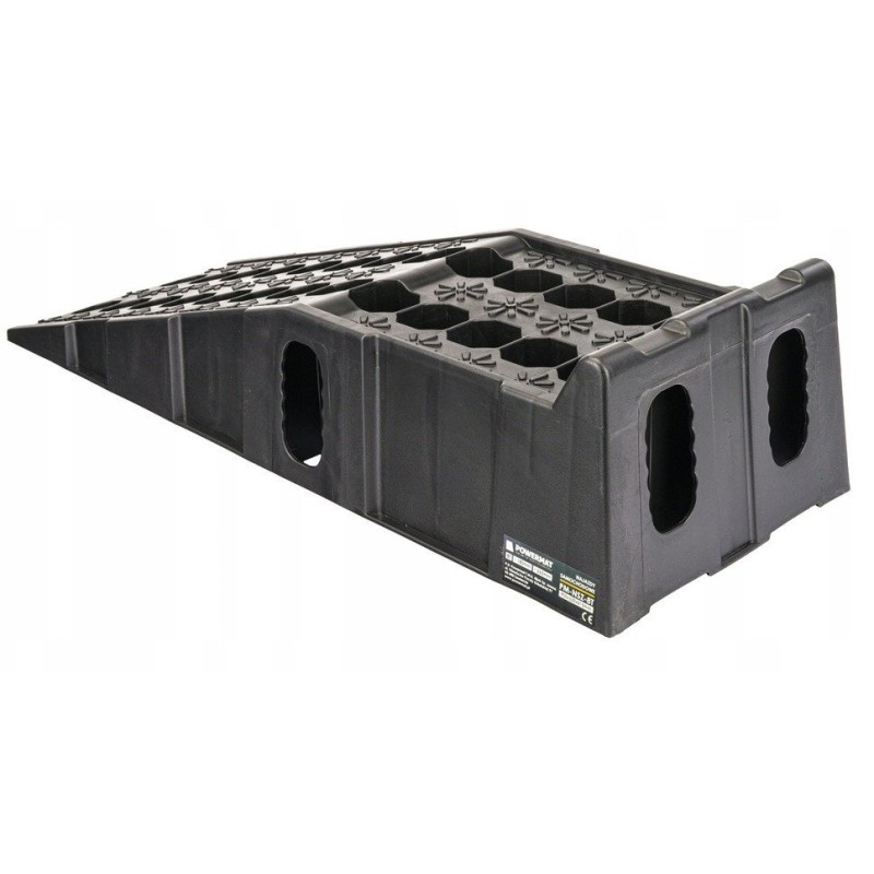 FAHRBORDSTEINE | 2 STÜCK | 8000 KG Marke: Powermat Modell: PM-NZS-8T Technische Daten Material: HDPE (hochdichtes Polyethylen) Maximale Tragkraft: 8 t Höhe: 180 mm Länge: 905 mm Breite: 265 mm Nettogewicht: 9,4 kg Die Auffahrrampen zeichnen sich durch eine stabile und robuste Konstruktion aus, die sich nicht verformt und nicht bricht, einer beträchtlichen Länge und Breite, die für die meisten PKWs geeignet ist, einem sanften Auffahrwinkel sowie Gummipuffern, die im Gegensatz zu anderen Produkten auf dem Markt in größerer Anzahl (bis zu sechs) vorhanden sind, was ein sicheres Auffahren der Räder auf die Rampen gewährleistet, ohne dass diese verrutschen. Ein hoher Anschlag verhindert ein versehentliches Herunterrollen vom Ende der Auffahrrampe. Vielseitige Einsatzmöglichkeiten: Auffahrrampen aus HDPE (High Density Polyethylen) sind vielseitig einsetzbar und eignen sich ideal für verschiedene Standorte wie Parkplätze, Lagerhallen oder Ladezonen. Einfache Installation und Transport: Das geringe Gewicht des Materials erleichtert den Transport, die Installation und einen eventuellen Standortwechsel der Auffahrrampen, was bei sich ändernden logistischen Anforderungen von Vorteil ist. Rutschfestigkeit und Sicherheit: Dank ihrer speziellen Oberfläche sorgen die Auffahrrampen für eine effektive Haftung der Fahrzeugreifen, was die Sicherheit bei Manövern erhöht. Witterungsbeständigkeit: Auffahrrampen aus HDPE sind witterungsbeständig, was sie langlebig und korrosionsbeständig macht – ein wichtiger Faktor insbesondere im Außenbereich. Einfache Reinigung: Das Material ist leicht zu reinigen, was den Zeit- und Kostenaufwand für die Sauberhaltung der Auffahrrampen minimiert – ein wichtiger Faktor in Bereichen mit hohem Fahrzeugaufkommen. Geringe Wartungskosten: Die Auffahrrampen erfordern nur minimale Wartung, was langfristig zu niedrigeren Betriebskosten führt. Nachhaltige Materialien: HDPE, das für die Herstellung der Auffahrrampen verwendet wird, ist ein äußerst widerstandsfähiges und umweltfreundliches Material, wodurch der Einsatz dieser Lösungen nachhaltige Praktiken fördert. Rutschfeste Gummis: Sechs rutschfeste Gummis unter den Fahrzeugauffahrten spielen eine entscheidende Rolle beim Schutz vor Rutschen und sorgen für zusätzliche Haftung auf der Fahrbahn. Diese innovative Konstruktion erhöht die Sicherheit bei Logistikvorgängen und eliminiert das Risiko, die Kontrolle über das Fahrzeug zu verlieren, insbesondere bei schwierigen Wetterbedingungen.