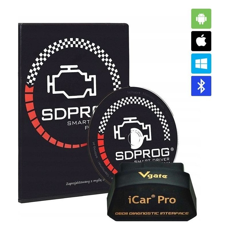iCAR PRO BLUETOOTH 4.0 LE-Schnittstelle + SDPROG-Software in polnischer Sprache für mobile Geräte mit iOS (iPhone, iPad, iPod Touch), Android sowie für Windows-Computer.