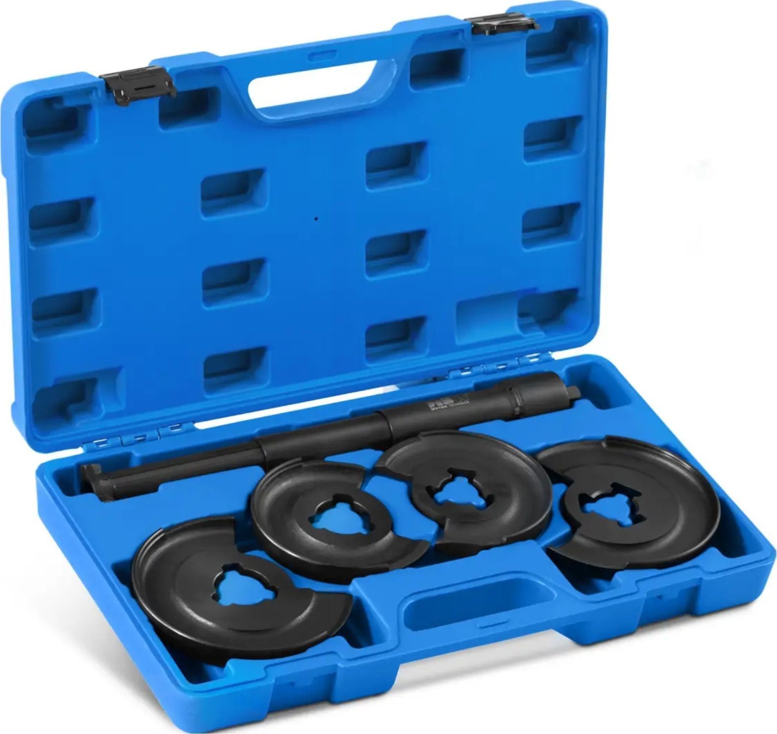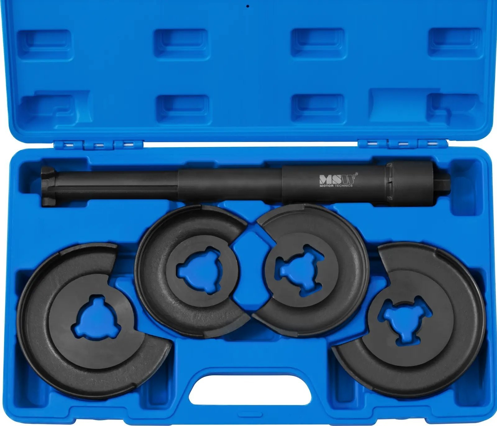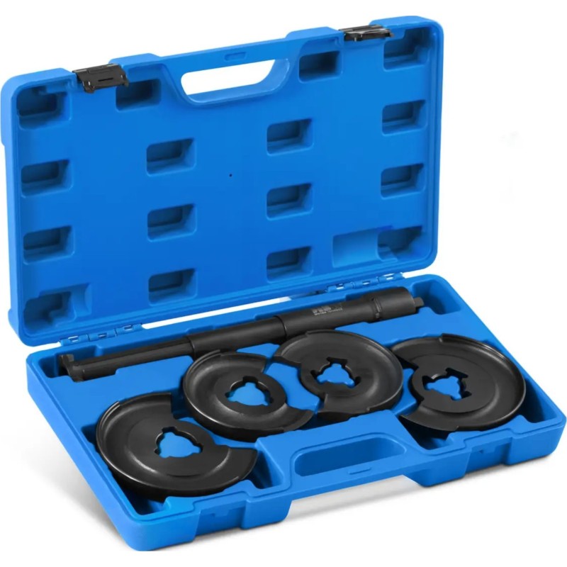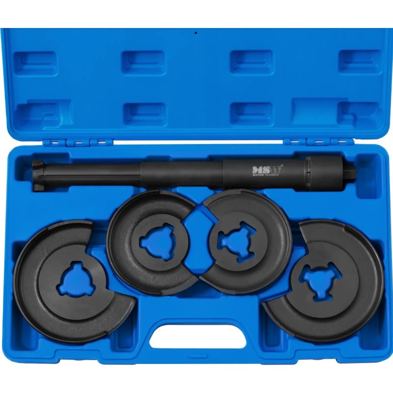Der Federabzieher der Marke MSW ist das ideale Werkzeug für Mechaniker und Hobby-Automechaniker. Mit ihm lassen sich Stoßdämpferfedern bequem aus- und einbauen, ohne dass die Achse ausgebaut werden muss. Das Modell MSW-HCSC-02 ist für Fahrzeuge der Marke Mercedes-Benz vorgesehen. Das Set enthält 4 Montageplatten . Zwei davon haben die Maße 90/150 mm , die beiden anderen 70/130 mm . Der Abzieher wird mit einem 325 mm langen Teleskopkompressor geliefert. Er ist aus Kohlenstoffstahl gefertigt und somit verschleißfest. Alle Teile des Sets lassen sich in einem praktischen Koffer verstauen.