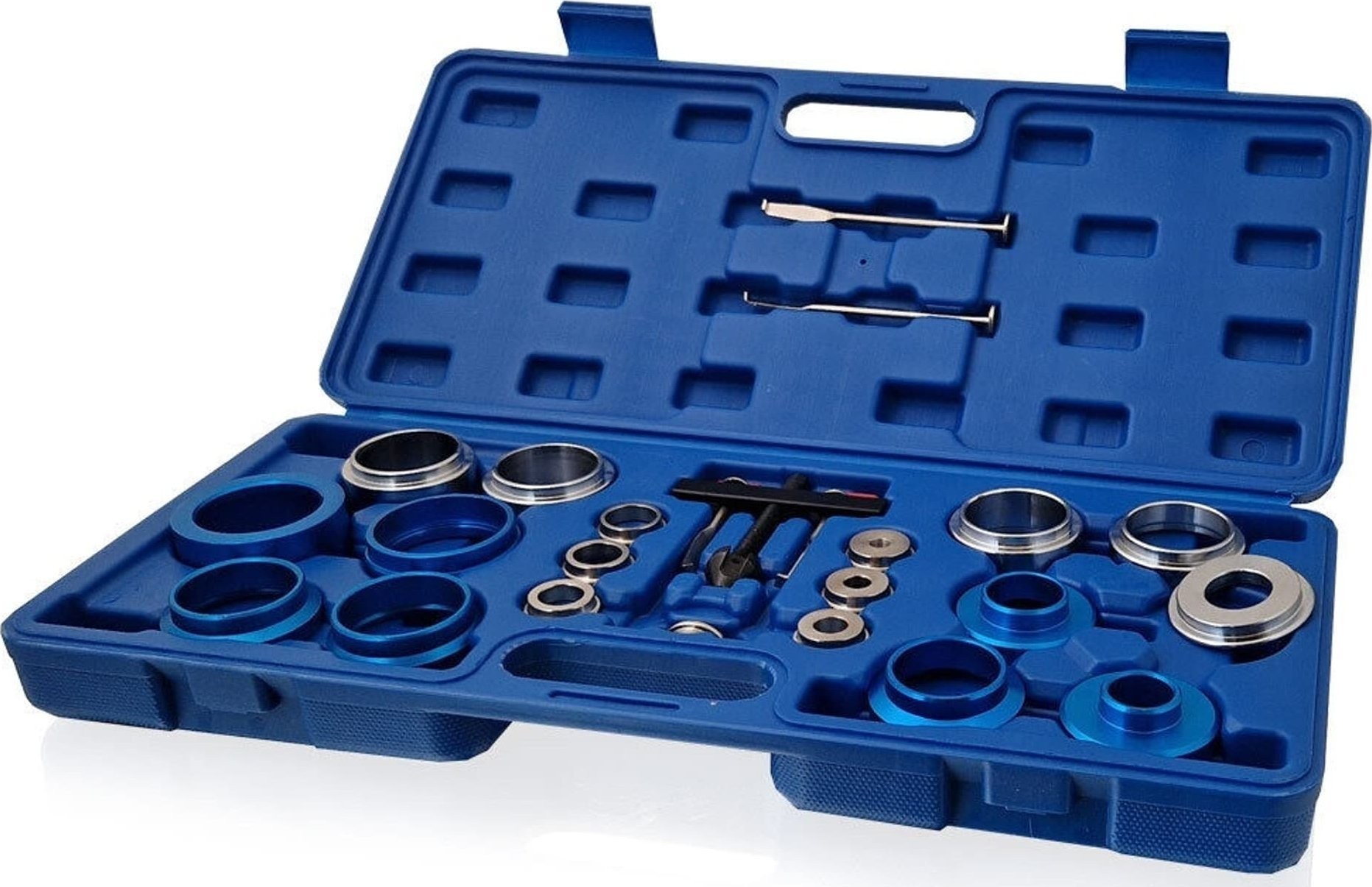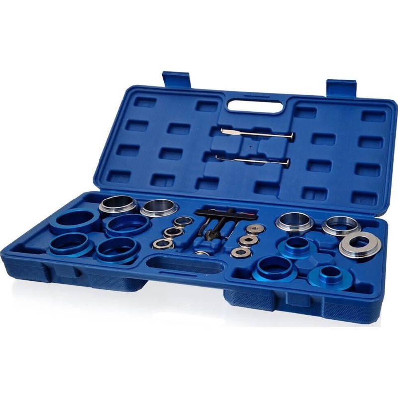 Das 22-teilige Set zum Ein- und Ausbau von Radialwellendichtringen ist ein umfassendes Werkzeugset, das speziell für den Ein- und Ausbau von Radialwellendichtringen entwickelt wurde. Das Set enthält eine sorgfältig ausgewählte Auswahl an Werkzeugen, die für die Handhabung einer Vielzahl von Größen und Typen von Dichtringen geeignet sind. Zum Set gehören außerdem spezielle Haken und Hebelwerkzeuge für die schonende Demontage von Dichtungsringen, die ein Aufreißen oder Zerkratzen der Wellenoberfläche verhindern. Die Werkzeuge sind aus hochwertigem Material gefertigt, das eine hohe Lebensdauer und Belastbarkeit bei der Montage und Demontage gewährleistet. Ergonomisch geformte Griffe sorgen für eine komfortable Handhabung und erleichtern präzises Arbeiten auch an schwer zugänglichen Stellen.