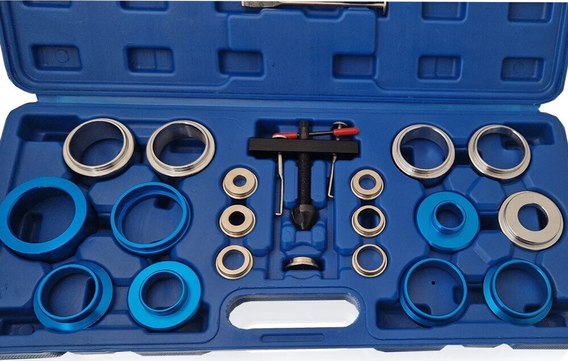 • 7x Adapterringe für die gängigsten Zentralbolzen (M8, M10, M12, M14, M16, M18 und M20)