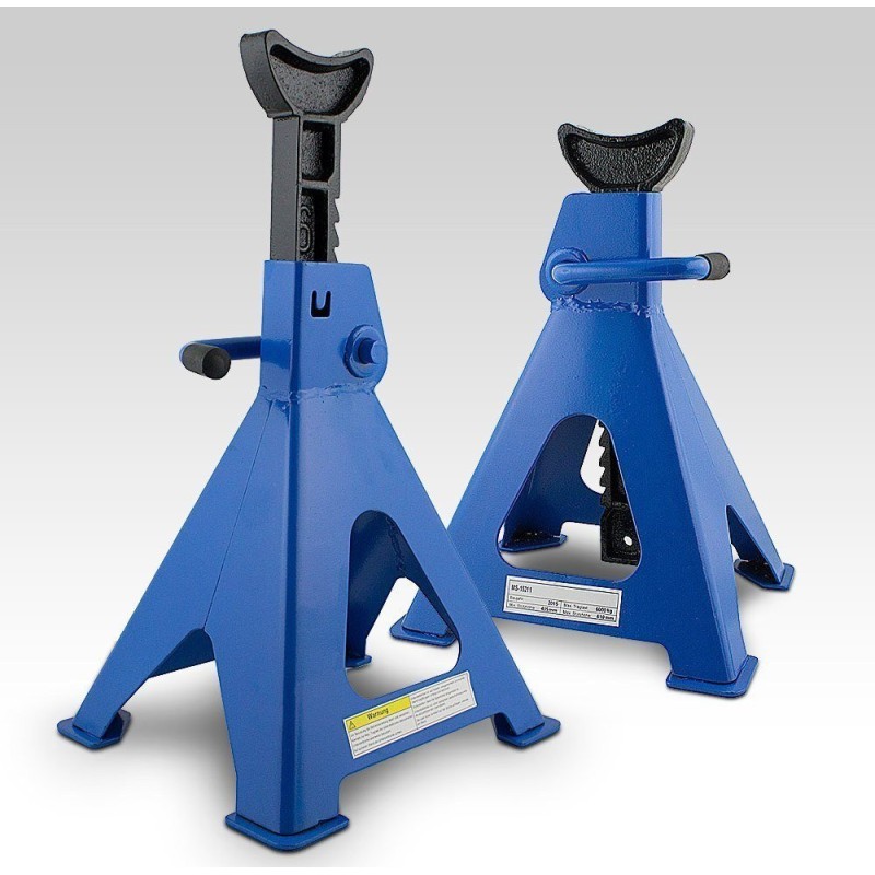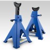 Professionelle Unterbau-Stützen für Fahrzeuge. Tragkraft pro Stütze bis zu 6 t, aus Stahl gefertigt und mit einer zusätzlich verstärkten mechanischen Verriegelung ausgestattet. Stützen mit 13-stufiger Verstellung. Arbeitsbereich von 41,5 cm bis ca. 61 cm. Ideale Werkzeuge für Mechaniker, Autohäuser sowie alle Autofahrer.