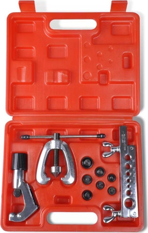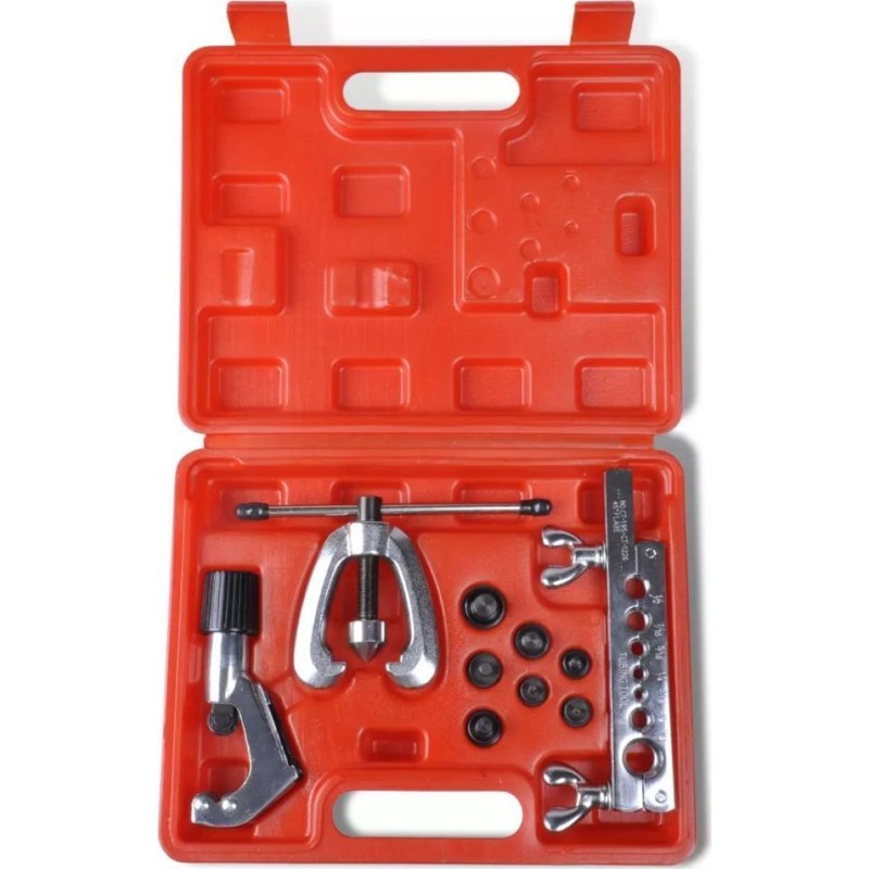 Dieses hochwertige Werkzeugset ist die ideale Wahl, wenn Sie alle Arten von verformbaren Rohren reparieren möchten. Das Set eignet sich perfekt für Rohre aus Kupfer, Messing oder Aluminium. Alle Werkzeuge sind aus gehärtetem Stahl mit verchromter Oberfläche gefertigt, was eine lange Lebensdauer garantiert. Das gesamte Set wird in einem roten Koffer geliefert, der den Transport und die Aufbewahrung erleichtert.