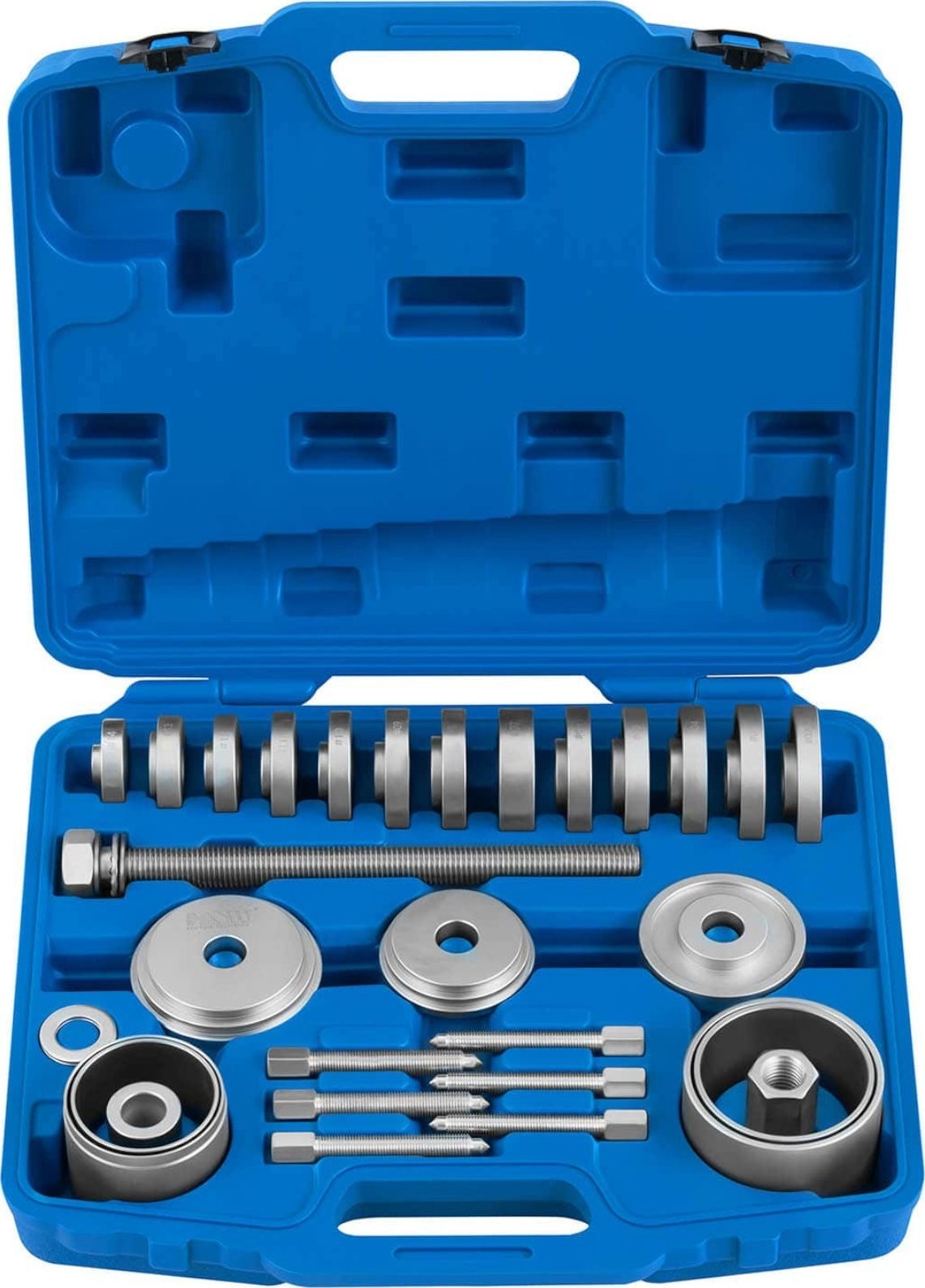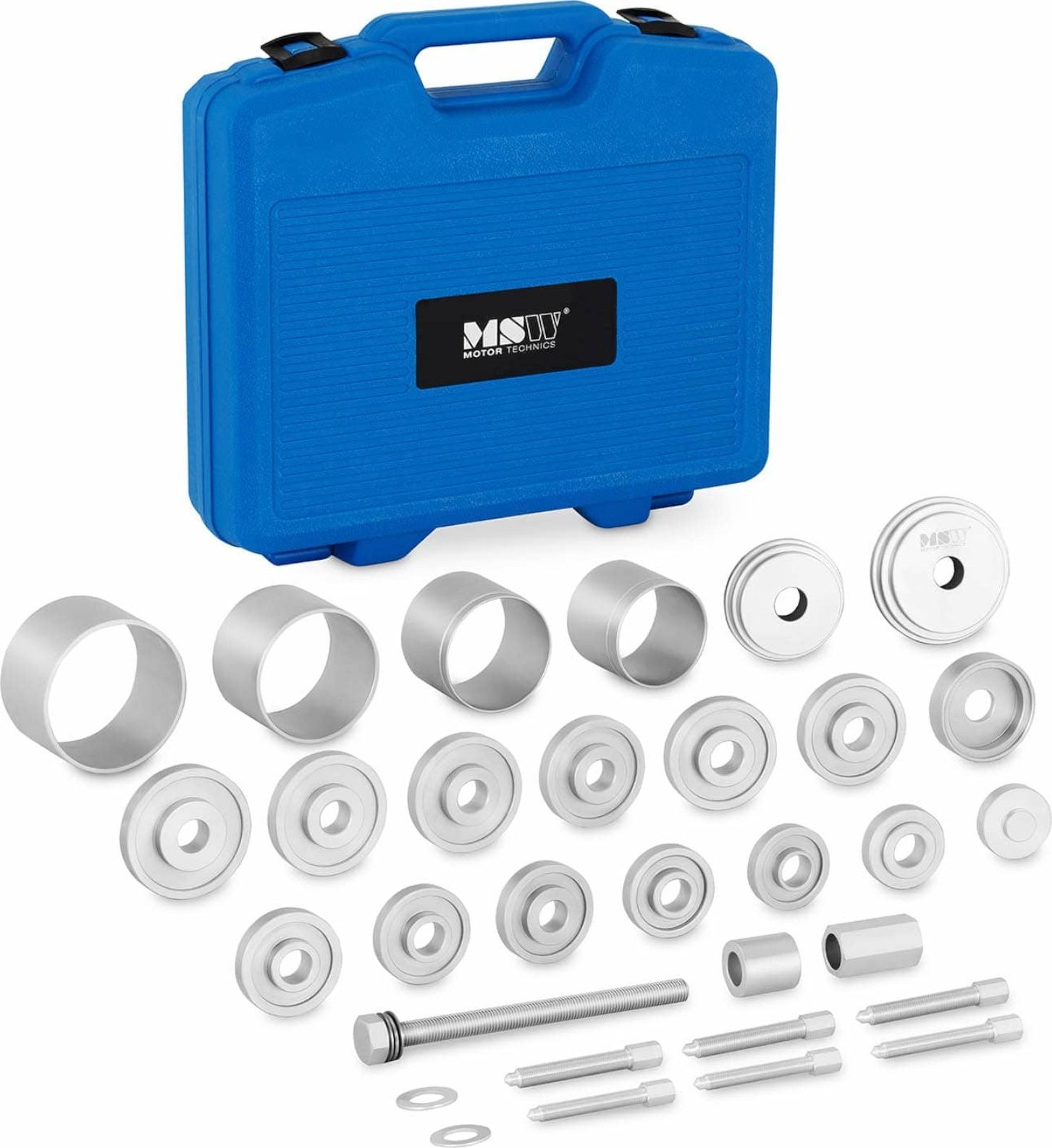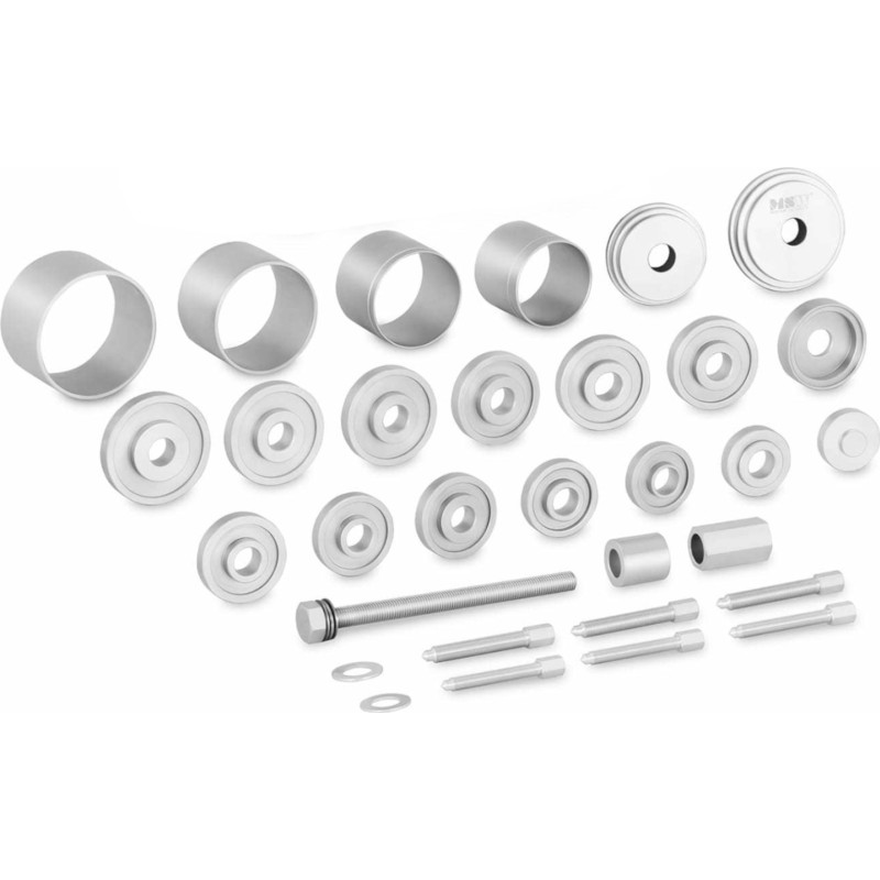 Der Abzieher für Vorderradnabenlager dient zu deren Montage und Demontage. Das Universalmodell MSW-SPS-21 eignet sich für die meisten Radlager in PKWs, Motorrädern und verschiedenen Maschinen. Das Set der Marke MSW eignet sich sowohl für professionelle Kfz-Werkstätten als auch für Heimwerker-Garagen. Es ermöglicht die schnelle und einfache Demontage/Montage der Vorderradnabe und ihrer Lager. Das Gerät ist aus strapazierfähigem Stahl mit Korrosionsschutzbeschichtung gefertigt. Das gesamte Set befindet sich in einem praktischen Kunststoffkoffer.