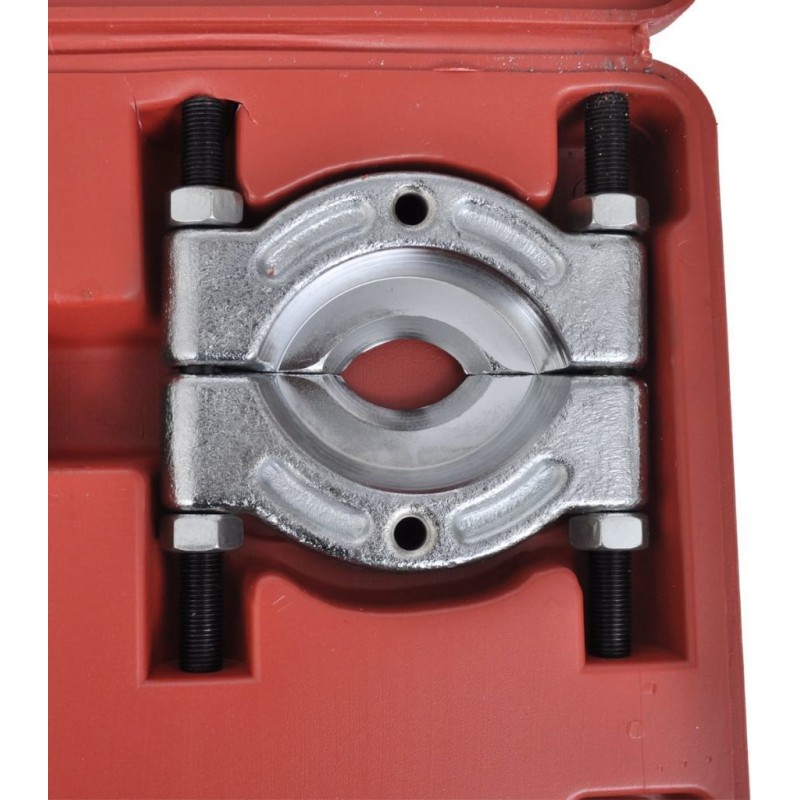 Das Lagerabzieherset eignet sich zum einfachen, schnellen und effizienten Ausbau von Zahnrädern, Riemenscheiben und Lagern. Es kann bei den meisten Fahrzeugen eingesetzt werden. Die Ausführung aus gehärtetem Stahl gewährleistet eine lange, störungsfreie Lebensdauer, und der praktische Koffer sorgt für Ordnung unter den Werkzeugen. Das Set enthält: einen Abzieher mit 2- und 3-Zoll-Backen, einen H-Träger, eine Bleischraube, 2 Bügeladapter sowie 2 5-Zoll-Verlängerungen mit Außen- und Innengewinde.