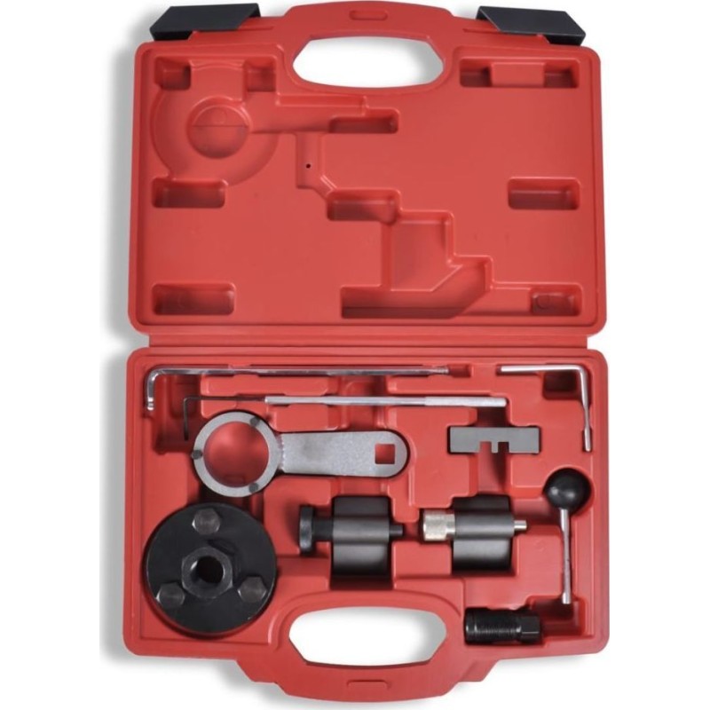 Das zehnteilige Werkzeugset bietet professionelle Qualität auch für den Heimgebrauch. Es eignet sich zum Arretieren der Nockenwelle und der Kurbelwelle, zum Ein- und Ausbau der Kraftstoff- und Wasserpumpe, zum Wechseln des Zahnriemens und für viele weitere Arbeiten.