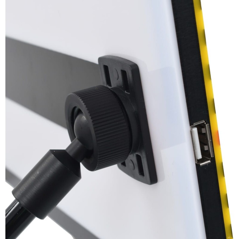 Dank des starken Saugnapfs und des flexiblen Arms kann diese reflektierende Beulensuchplatte in verschiedenen Winkeln am Fahrzeug befestigt werden. Unser Werkzeug zur Dellenreparatur ohne Lackieren ist sehr einfach zu bedienen. Der Lieferumfang umfasst 1 LED-Reflexionsplatte mit Saugnapf und 1 USB-Netzteil.