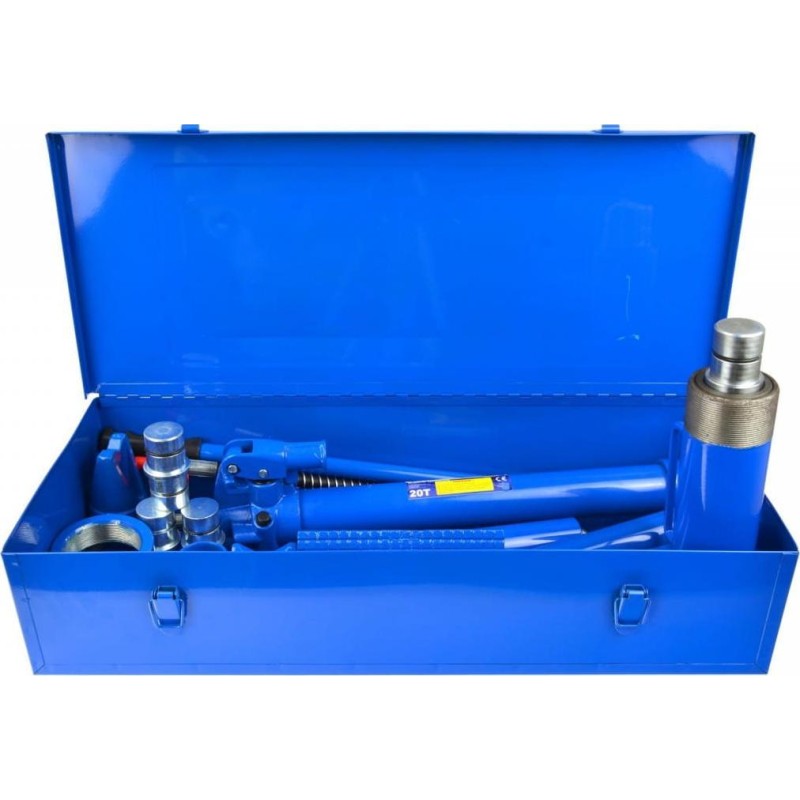 Professionelles Spreizwerkzeug-Set mit 20 Tonnen Kraft im Koffer. Das Set ist mit einer leistungsstarken Hydraulikpumpe ausgestattet, mit der Sie folgende Arbeiten ausführen können: Heben, Ziehen, Biegen, Richten und Spreizen. Produktmerkmale: Die schnelle Hydraulikpumpe findet breite Anwendung in Kfz-Werkstätten; Verlängerungsstücke, die zu einem langen Ganzen verbunden werden können. Technische Daten: Spreizkraft: 20 t Arbeitsbereich: 330 – 460 mm Hub des Zylinders: 130 mm Setbestandteile: Hydraulikpumpe, 20-Tonnen-Hochdruck-Hydraulikzylinder, flexibler Schlauch mit Schutzfedern an beiden Enden, Verlängerungen: 10 (5"), 20 (8"), 30 (12"), 50 cm (20") 3 Verbindungsstücke Kreuzfuß Konusfuß Flachfuß Metallkoffer 71x30x15 cm