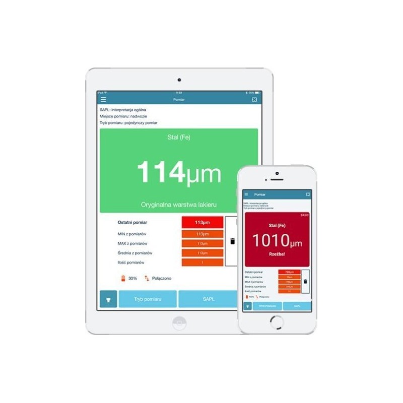 Das Messgerät lässt sich mit einer Smartphone-App verbinden – die App ist sowohl für Android als auch für iOS verfügbar. Die App führt uns auf einfache Weise durch den Prozess der Untersuchung und Auswertung der Messungen. Sie müssen sich keine Gedanken darüber machen, ob das Auto lackiert wurde oder nicht – Sie legen ganz einfach einen Referenzwert fest, und die App übernimmt die Auswertung der Messungen!