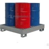 Topserw-Auffangwanne, aus verzinktem Stahl, zur Lagerung von 4 Fässern mit einem Fassungsvermögen von je 200 l sowie von Behältern mit brennbaren Flüssigkeiten (Benzin, Lösungsmittel usw.). Dient zur dauerhaften Auffangung von Leckagen aus Behältern und Fässern, die innerhalb von Gebäuden gelagert werden.