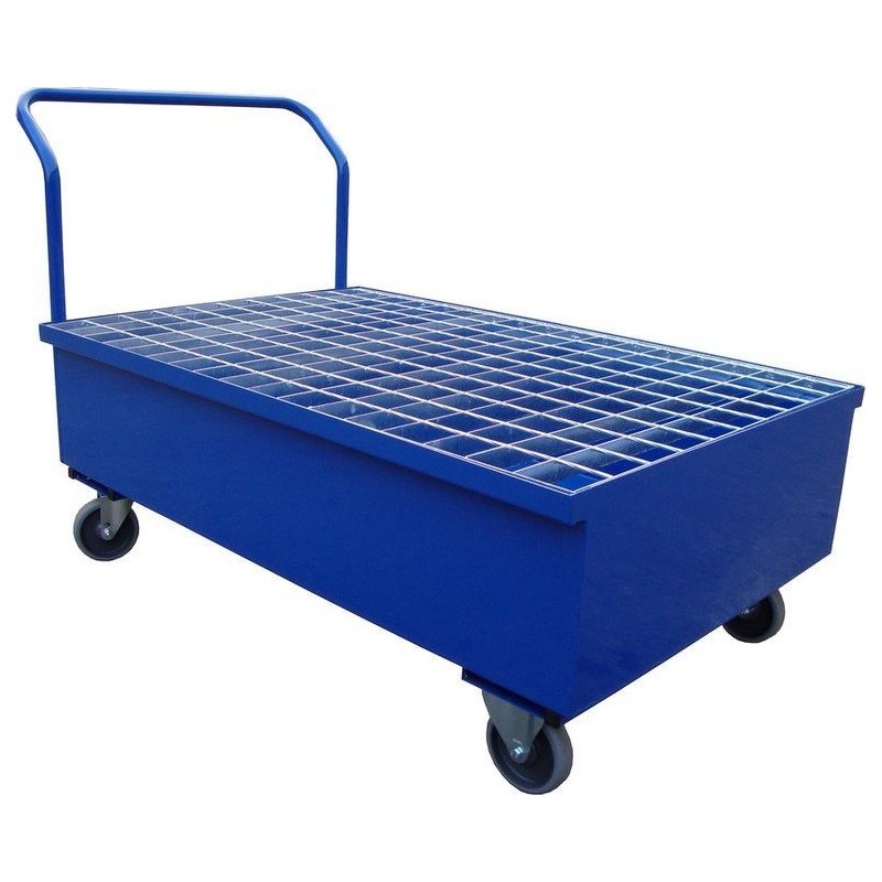 Mobile Auffangwanne aus Stahl mit Gitterrost, Fassungsvermögen 200 l, für 2 Fässer, Maße 1200 x 800 x 230