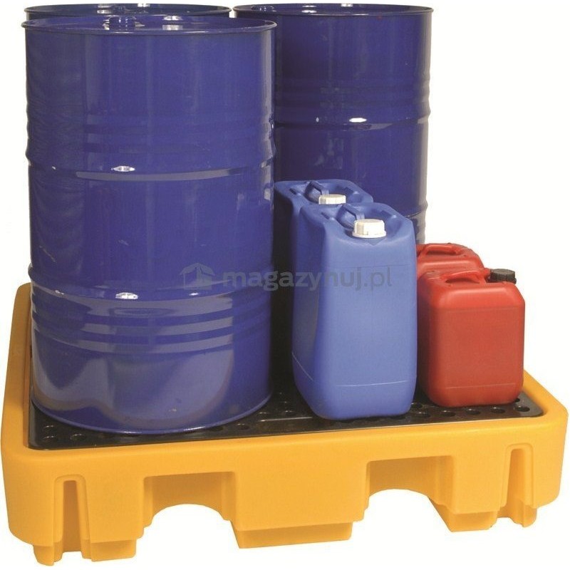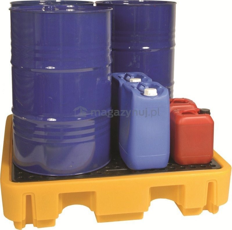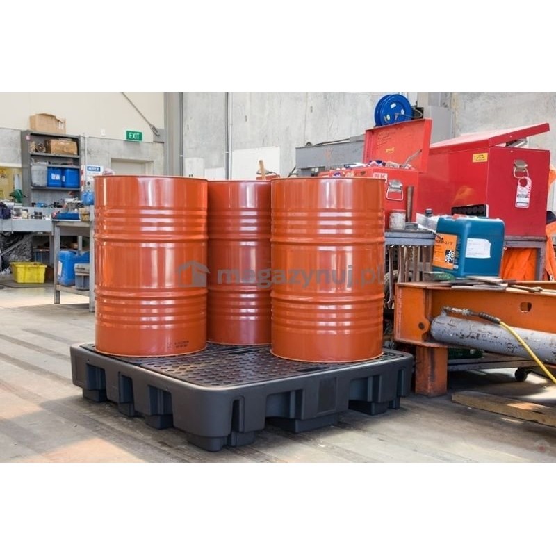 Hergestellt aus äußerst strapazierfähigem und chemikalienbeständigem Polyethylen. Bestimmt für die Lagerung und den Transport von Fässern und Behältern mit Gefahrstoffen wie Ölen, Säuren oder Erdölprodukten. Die Palette zeichnet sich durch enorme Belastbarkeit auch in industriellen Umgebungen aus.