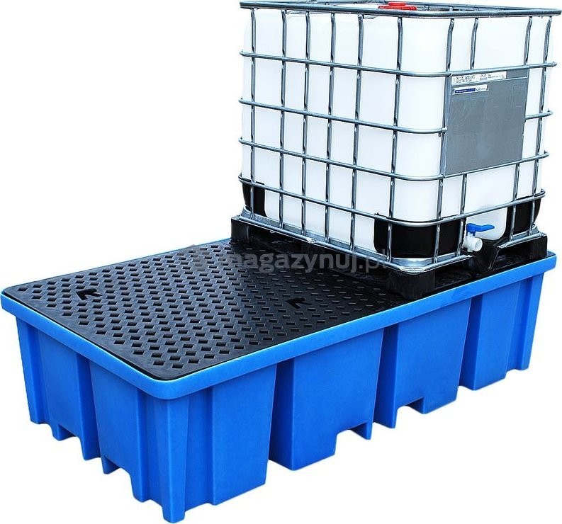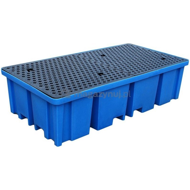 Topserw Auffangwanne mit Gitterrost, Fassungsvermögen 1150 l, MEGA, 2 x IBC/KTC, Abmessungen 2340 x 1225 x 610 mm, blau