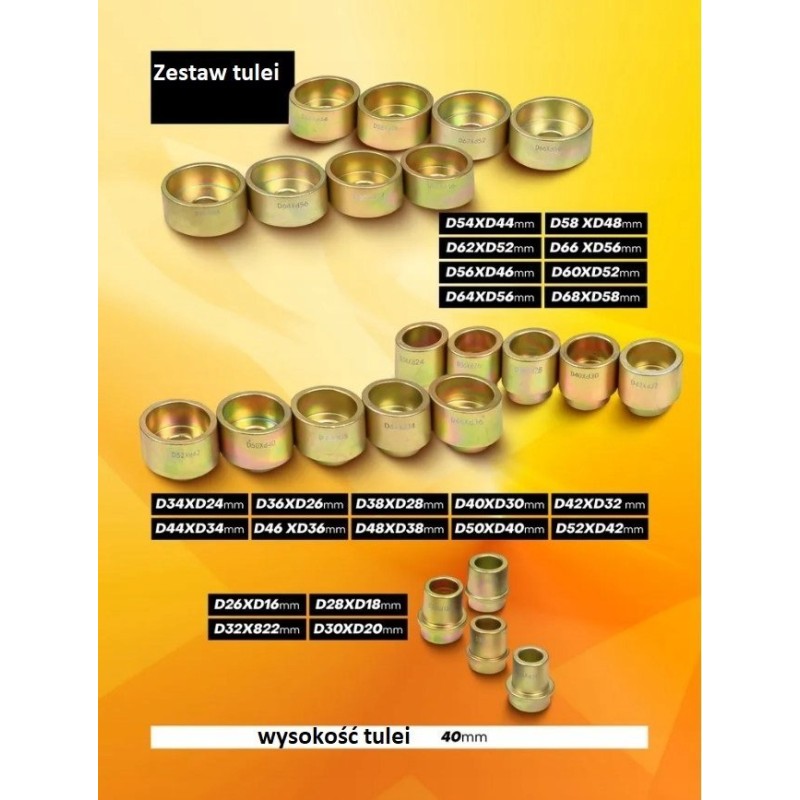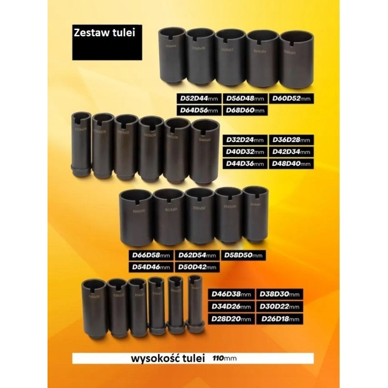 - Satz von Hülsen mit einer Höhe von 40 und 110 mm, ausreichend für die Arbeit an fast jedem Fahrzeug.