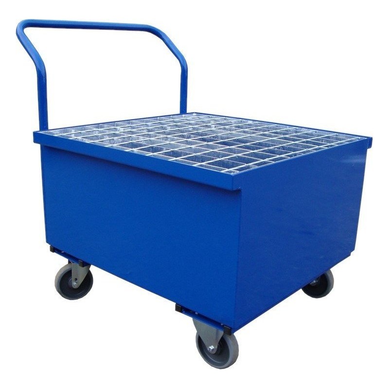 Mobile Auffangwanne aus Stahl mit Gitterrost, Fassungsvermögen 200 l, Abmessungen 740 x 740 x 370 mm