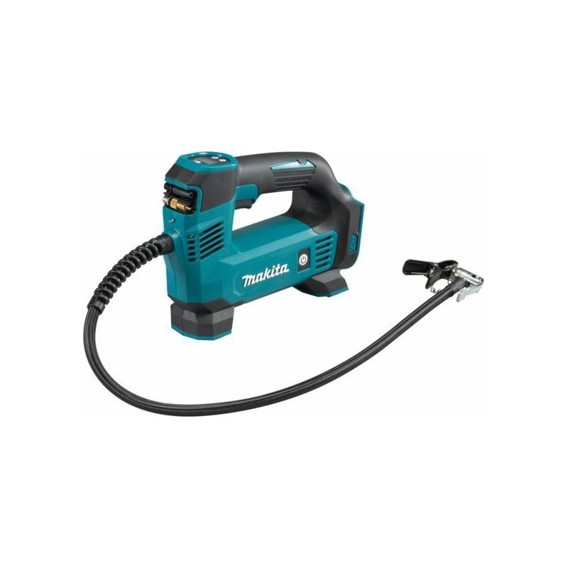 Technische Daten: Versorgungsspannung: 18 V Akkutyp: Li-Ion Kompatible Akkus: 1,5 / 2,0 / 3,0 / 4,0 / 5,0 / 6,0 Ah Max. Betriebsdruck: 830 kPa / 121 PSI / 8,3 bar Luftdurchsatz:12 l/minLeistung (beim Aufpumpen von Reifen der Größe 215/60R16):mit Akku BL1860B: 11 StückBetriebszyklus:5 Min. ein / 5 Min. ausSchlauchlänge:650 mmAbmessungen (L x B x H):266 x 80 x 174 mmGewicht (EPTA): 1,4 – 1,7 kgAkku-Minikompressor mit 18-V-Akku zum Aufpumpen von Auto- und Fahrradreifen, Bällen usw.Automatische Abschaltung des Geräts bei Erreichen des SolldrucksSpeicherung des zuletzt vor dem Ausschalten eingestellten SolldrucksStabile Standfüße ermöglichen den Einsatz als „stationäres Gerät“Thermostat zum Schutz vor ÜberhitzungBeleuchtetes digitales Manometer für gute Ablesbarkeit an dunklen OrtenVerschiedene Aufsteckdüsen zum Aufpumpen, die im Gehäuse des Geräts verstaut werden könnenLED-Leuchte für den Einsatz an dunklen OrtenNicht kompatibel mit den Akkus BL1811G, BL1813G, BL1815G (ohne Elektronik) sowie mit dem Akku BL1815 (18 V / 1,3 Ah) nicht kompatibel. Lieferung ohne Akkus und Ladegerät**Illustrationsfoto....