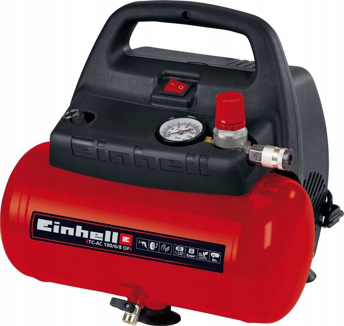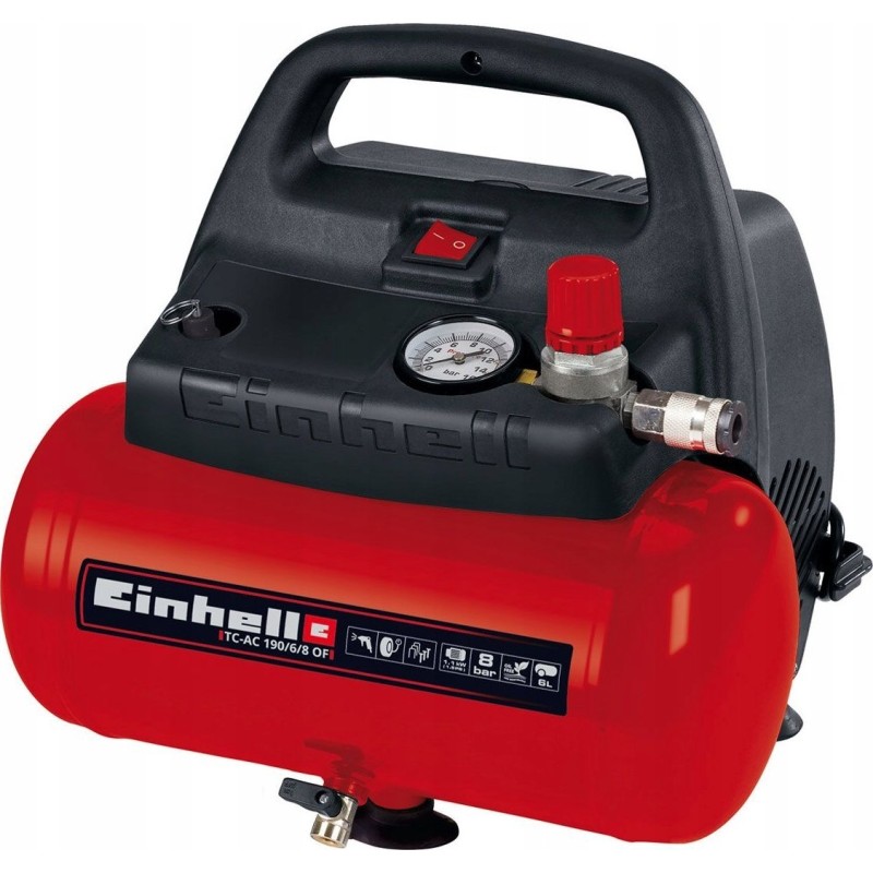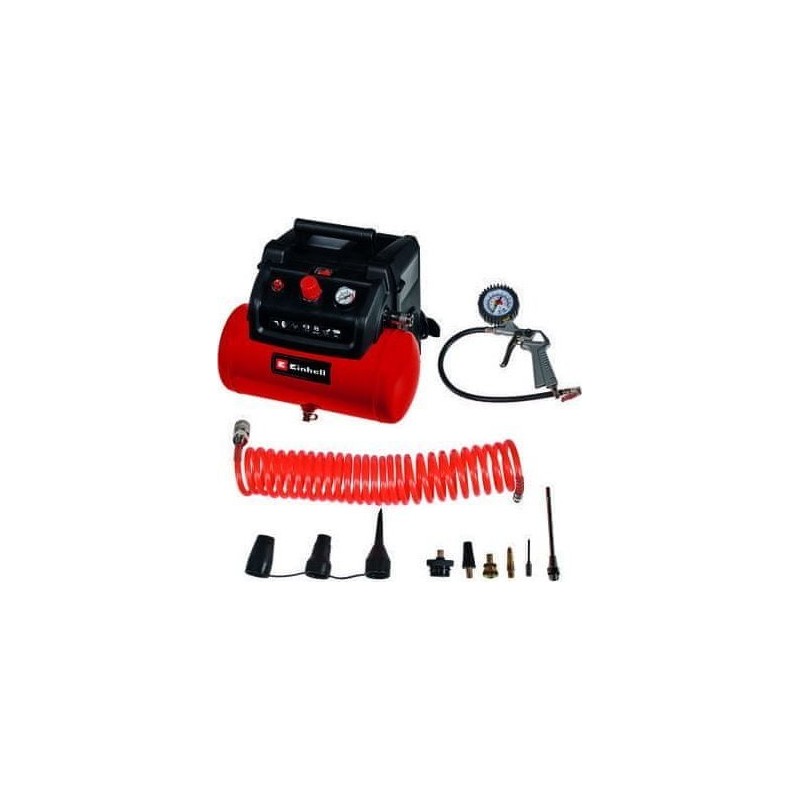Einhell-Kompressor TC-AC 190/6/8 OF Set (rot/schwarz, 1.200 Watt, Reifenfüller, Druckluftschlauch)