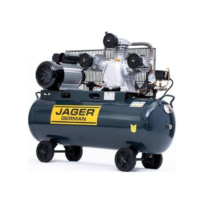 ÖLGEÖLTER KOMPRESSOR JAGER GERMAN 100 L 8 bar 540 l/min 400 V – Professionell, leistungsstark, mobil – überall dort, wo Sie Druckluft benötigen. Kompressor mit zuverlässigem Direktantrieb und verstärkter Konstruktion.