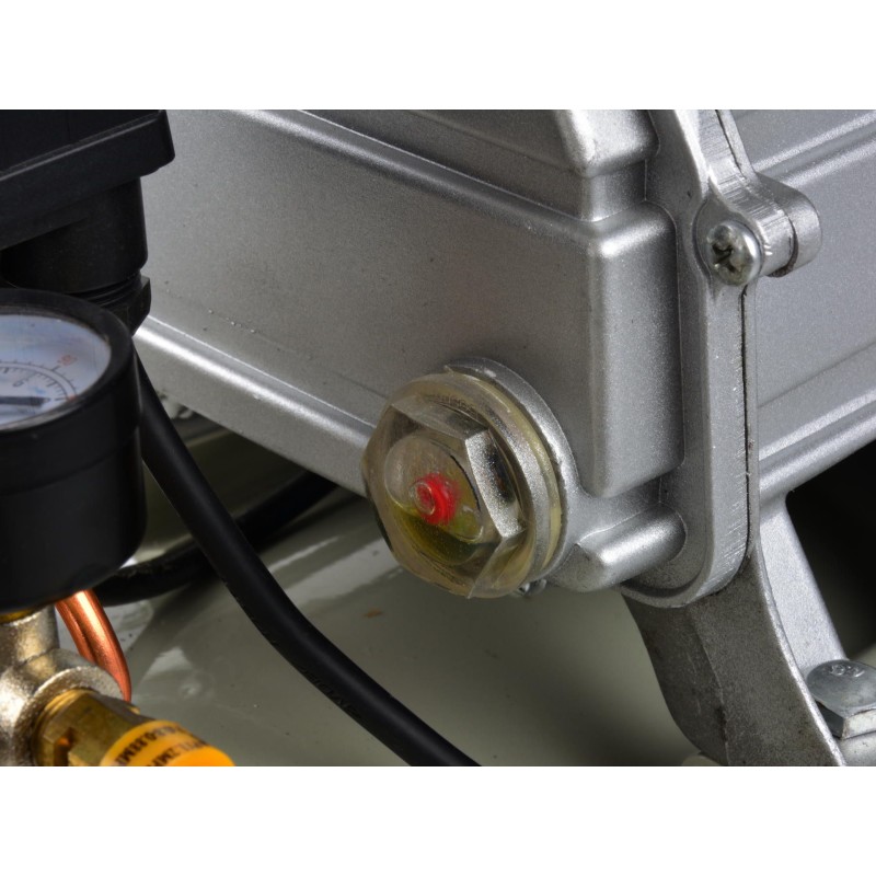 Ölkompressor mit einem Tankvolumen von 24 Litern. Dieser Kompressor ist mit einer ölgeschmierten Pumpe ausgestattet, die für den Dauerbetrieb geeignet ist. Im Lieferumfang enthalten sind ein Manometer zur Anzeige des Tankdrucks sowie ein Druckminderer mit Manometer, mit dem der Ausgangsdruck eingestellt und abgelesen werden kann.
