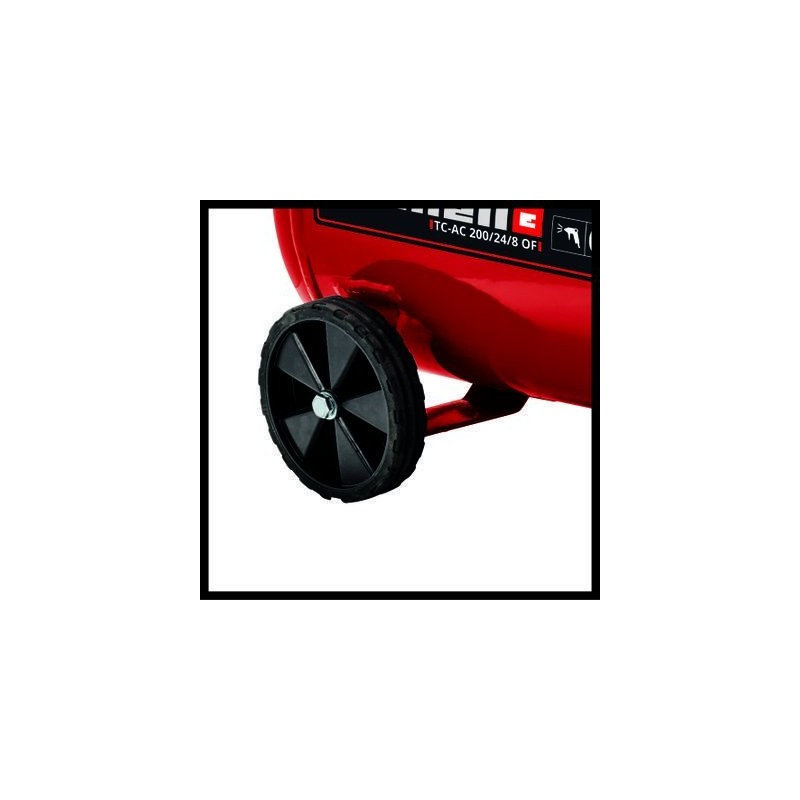Einhell TC-AC 200/24/8 OF. Förderleistung: 180 l/min, Drehzahl des Pumpenmotors (maximal): 15.000 U/min, Maximaler Druck: 8 bar. Produktfarbe: Schwarz, Rot, Geeignet für: Universell, Anzahl der Räder: 2 Stück. Motorleistung: 1200 W, Stromversorgung: Wechselstrom, Eingangsspannung AC: 220–240 V. Produktgewicht: 16 kg, Gewicht inkl. Verpackung: 18,6 kg