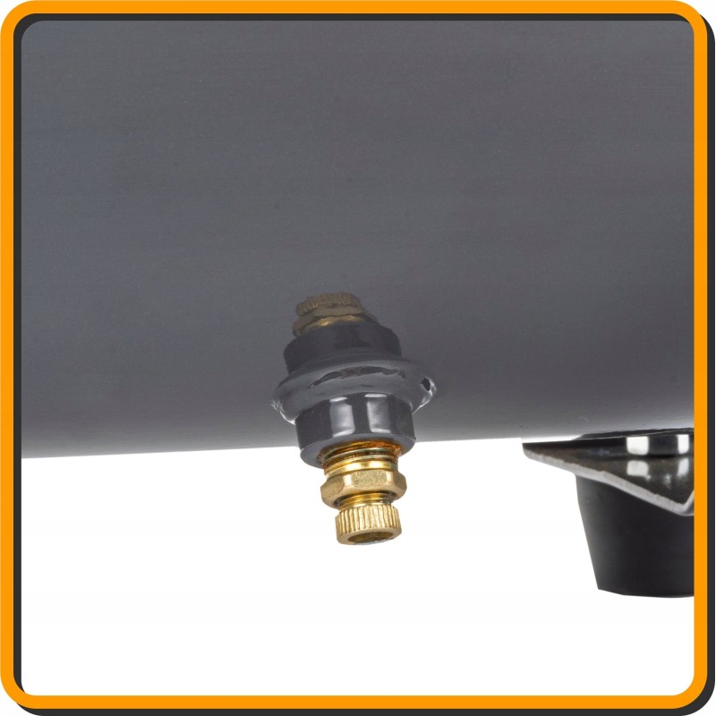 Der Kompressortank ist innen und außen verzinkt. Der Tank ist mit einem Ablassventil ausgestattet, das das Ablassen von angesammeltem Wasser ermöglicht und ihn so vor Korrosion schützt.