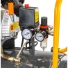 Das Gerät verfügt über 3 Ausgänge mit standardisierten europäischen „EURO“-Schnellkupplungen; zwei der Ausgänge sind über einen integrierten Druckminderer regelbar, der den Betriebsdruck auf einem Manometer anzeigt.