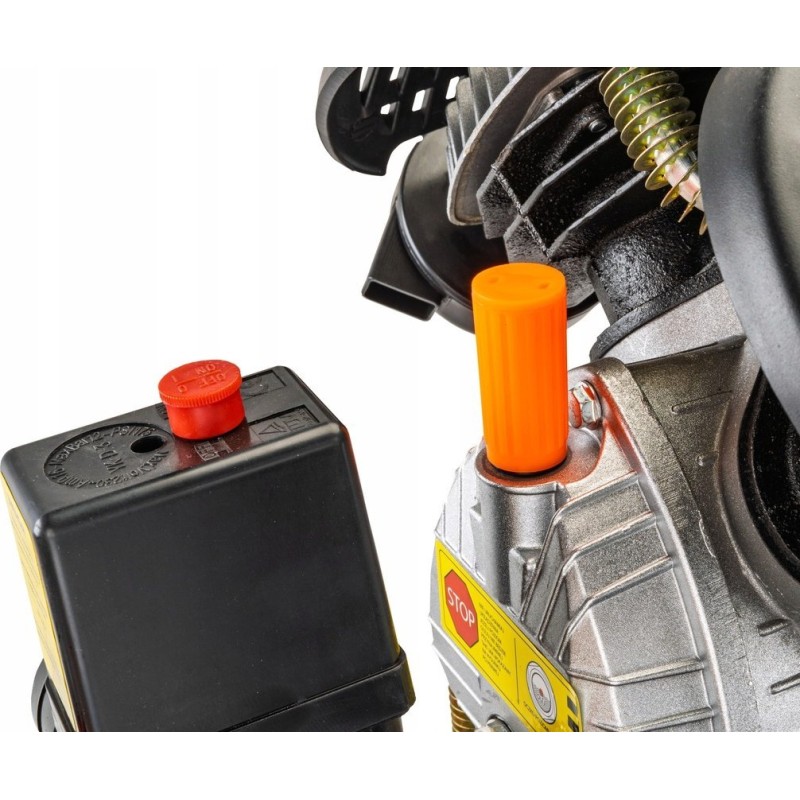 Der automatische Druckschalter wird bei einem Druck von 8 bar aktiviert, und das Sicherheitsventil schützt vor einem unkontrollierten Druckanstieg im Tank.