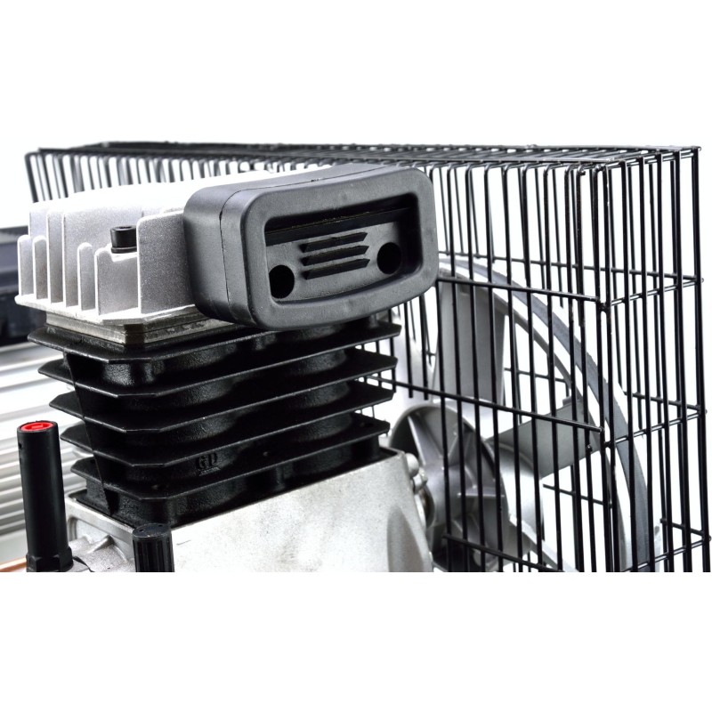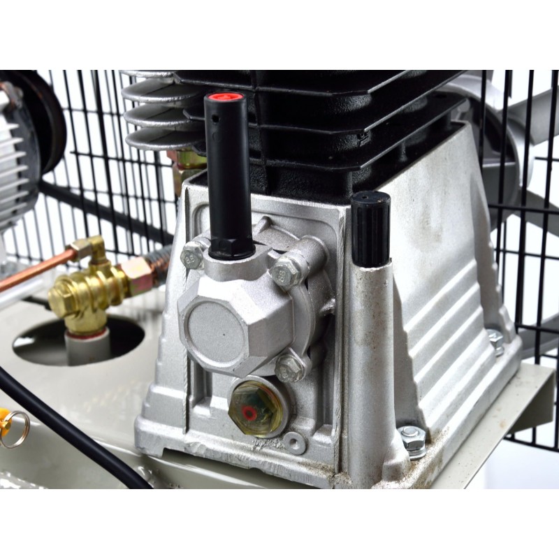 Ölkompressor mit einem leistungsstarken 2-PS-Motor und einem Tankvolumen von 100 Litern. Ausgestattet mit einem Druckminderer, der die Einstellung des Drucks im Tank ermöglicht.