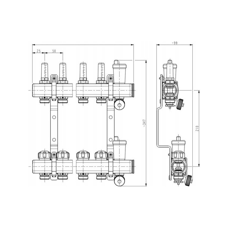 KRPTp – 1"-Verteiler für Flächen- und Heizkörperheizungen mit 3/4"-Ausgang nach Eurokonus-Standard KRPTp 11