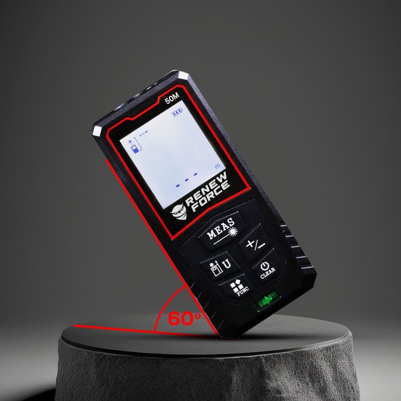 Der Laser-Entfernungsmesser Y-50 ist ein modernes Gerät, das hohe Präzision und einfache Bedienung vereint. Dank der elektronischen Wasserwaage werden herkömmliche Wasserwaagen überflüssig, was die Messungen verständlicher macht. Egal, ob Sie Heimwerker oder Profi sind, der Y-50 wird Ihre Erwartungen an präzise Messungen mit Sicherheit erfüllen.