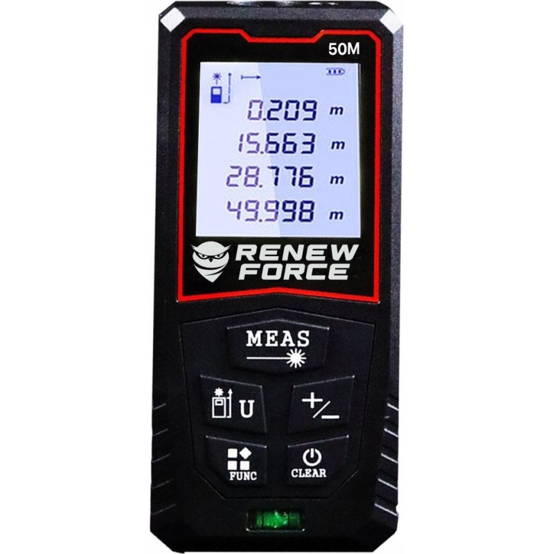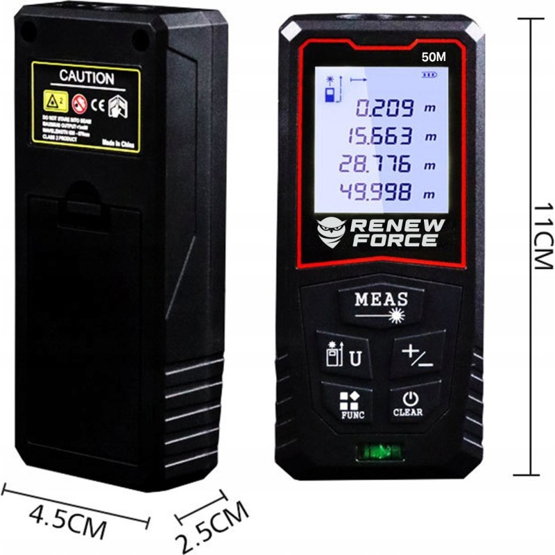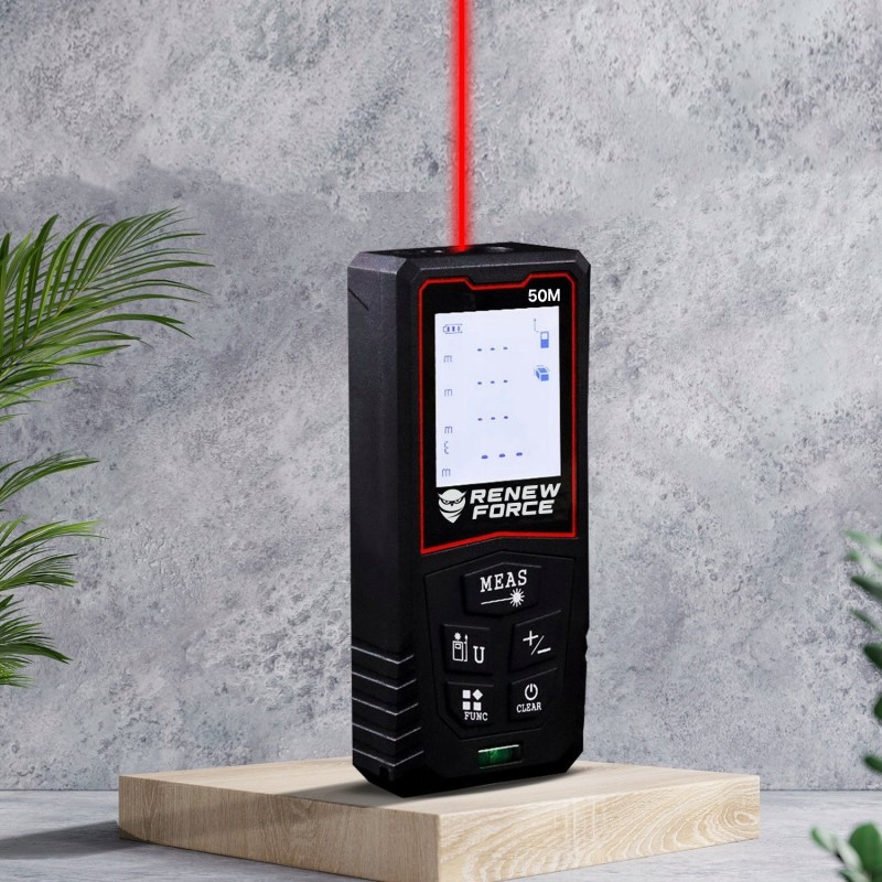 Der Entfernungsmesser Y-50 zeichnet sich durch eine Genauigkeit von ± 1/16 Zoll und einen Messbereich von bis zu 131 Fuß (ca. 40 Meter) aus. So können Sie sicher sein, dass jede Messung präzise und zuverlässig ist, was im Bauwesen und vielen anderen Bereichen von entscheidender Bedeutung ist.