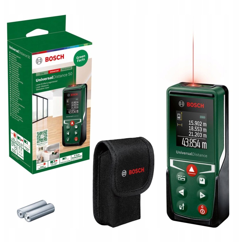 Der Bosch Laser-Entfernungsmesser UniversalDistance 50 ist ein modernes Gerät, das eine genaue Entfernungsmessung bis zu 50 m mit einer Genauigkeit von bis zu 2 mm ermöglicht. Dank fortschrittlicher Technologie erfolgt die Messung schnell und problemlos, was ihn zum idealen Werkzeug sowohl für Profis als auch für Hobbyhandwerker macht.