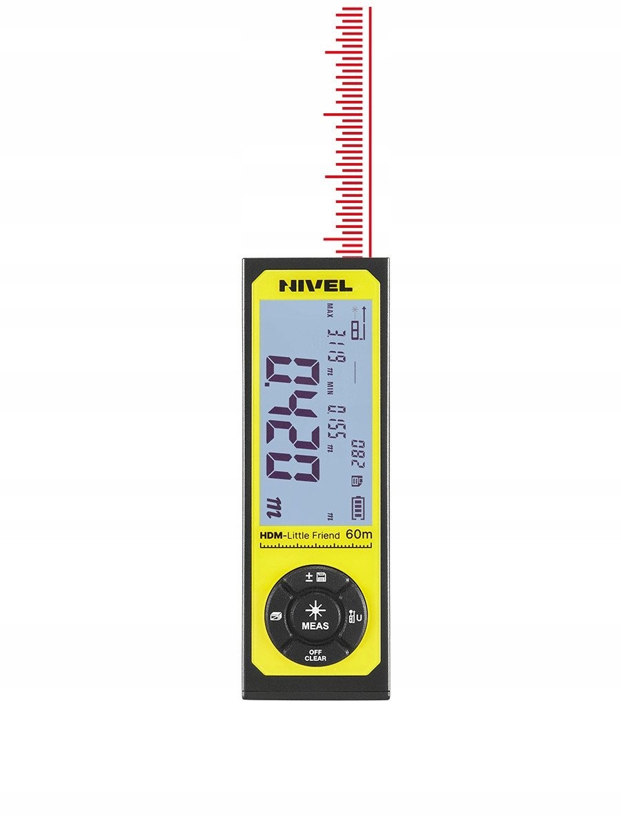 Der Laser-Entfernungsmesser Nivel System HDM-Little Friend ist ein kleines, aber äußerst funktionales Werkzeug, das genaue Messungen von Entfernungen, Flächen, Volumen und Höhen ermöglicht. Mit einer Reichweite von 60 Metern und einer Messgenauigkeit von ±2 mm ist er ein zuverlässiges Gerät für jede Situation.