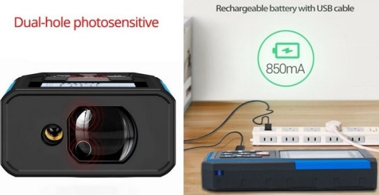 Der Laser-Entfernungsmesser verfügt über eine kontinuierliche Messfunktion, einen hellen Laserpunkt der Klasse 2, der sowohl bei Tag als auch bei Nacht sichtbar ist, ein LCD-Display mit Batteriestandsanzeige sowie die Möglichkeit, bis zu 99 Datensätze zu speichern. Die kompakte Form, die einfache Bedienung und das robuste Gehäuse sind weitere Vorteile.