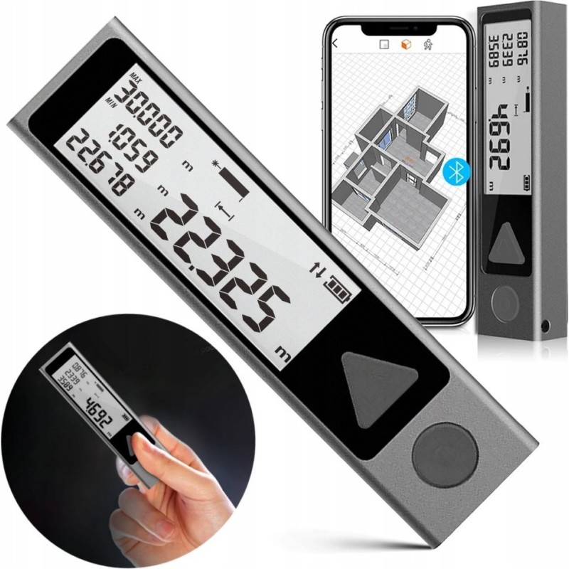 • Messfunktionen: Entfernungsmessung, Flächenberechnung, Volumenberechnung, Berechnung nach dem Satz des Pythagoras