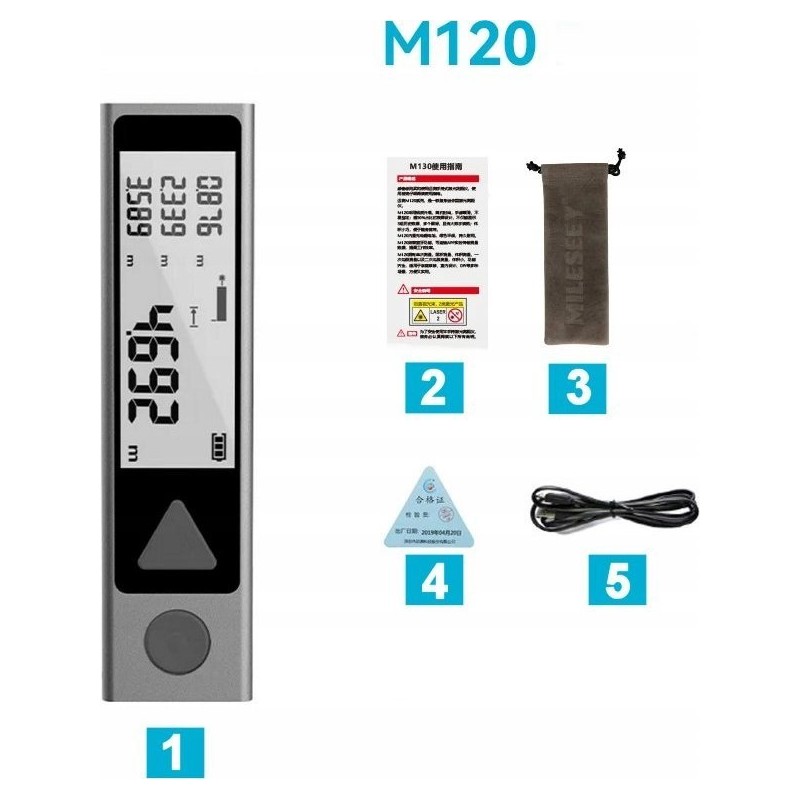 Der Entfernungsmesser M120 zeichnet sich durch seine kompakten Abmessungen (90 x 23 x 13,7 mm) und sein geringes Gewicht (120 g) aus, wodurch er leicht zu transportieren ist. Du kannst ihn überallhin mitnehmen, wo du genaue Messungen benötigst.