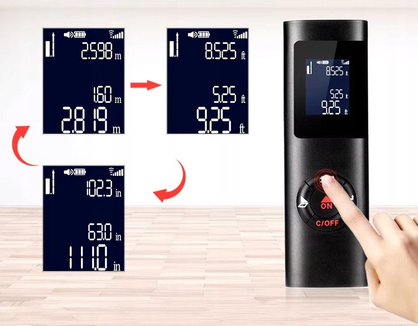 Das Gerät ermöglicht Messungen in verschiedenen Einheiten wie Metern, Fuß oder Zoll. Dadurch ist der Entfernungsmesser PRO 50 äußerst flexibel und passt sich den Bedürfnissen des Benutzers an, was ihn in vielen Situationen zu einem unersetzlichen Werkzeug macht.