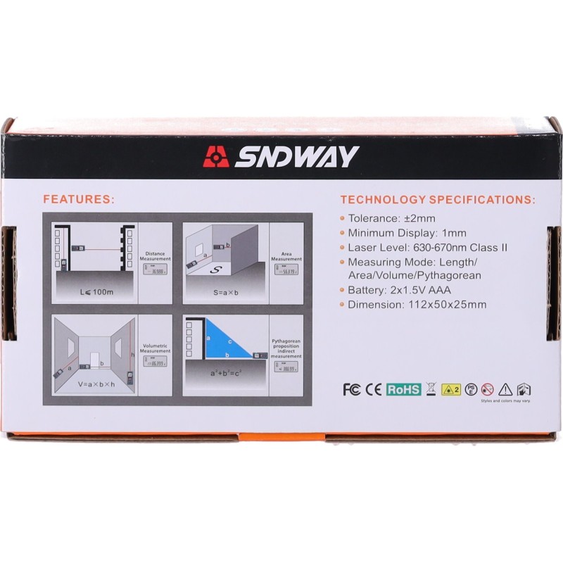 7. Abmessungen: Der Entfernungsmesser hat Abmessungen von 112 x 50 x 25 mm, was bedeutet, dass er relativ kompakt und leicht zu transportieren ist.