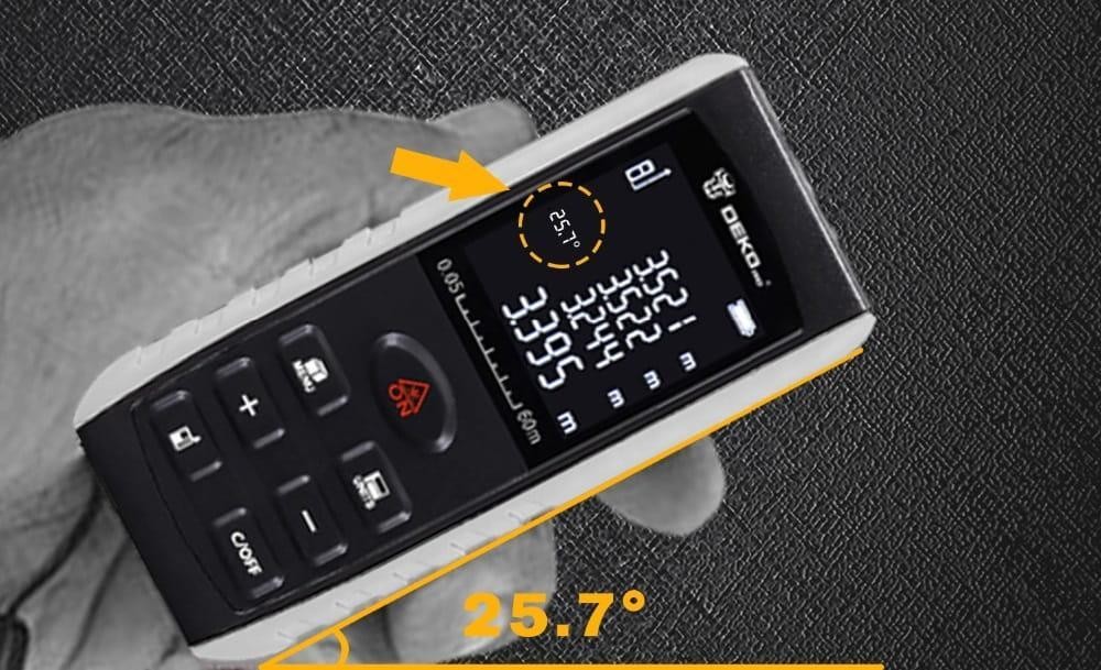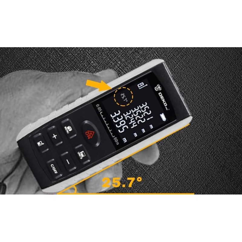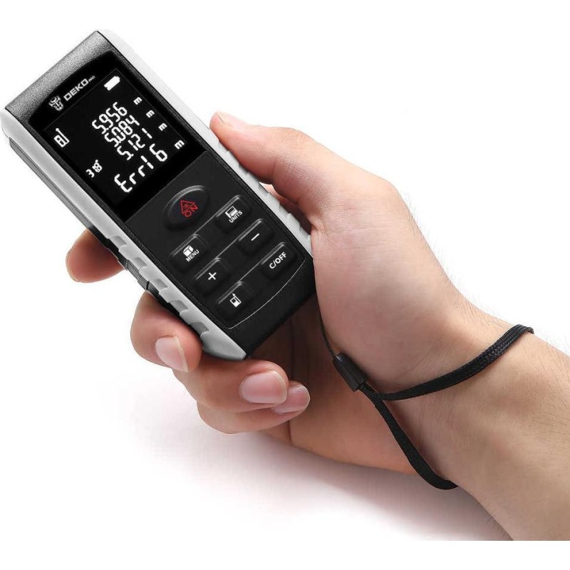 Der Entfernungsmesser DEKO LRE521 ist ein intelligentes Messgerät, das in kürzester Zeit präzise Messungen liefert. Er kann nicht nur Entfernungen messen, sondern auch Neigungswinkel, Flächen und Volumen.