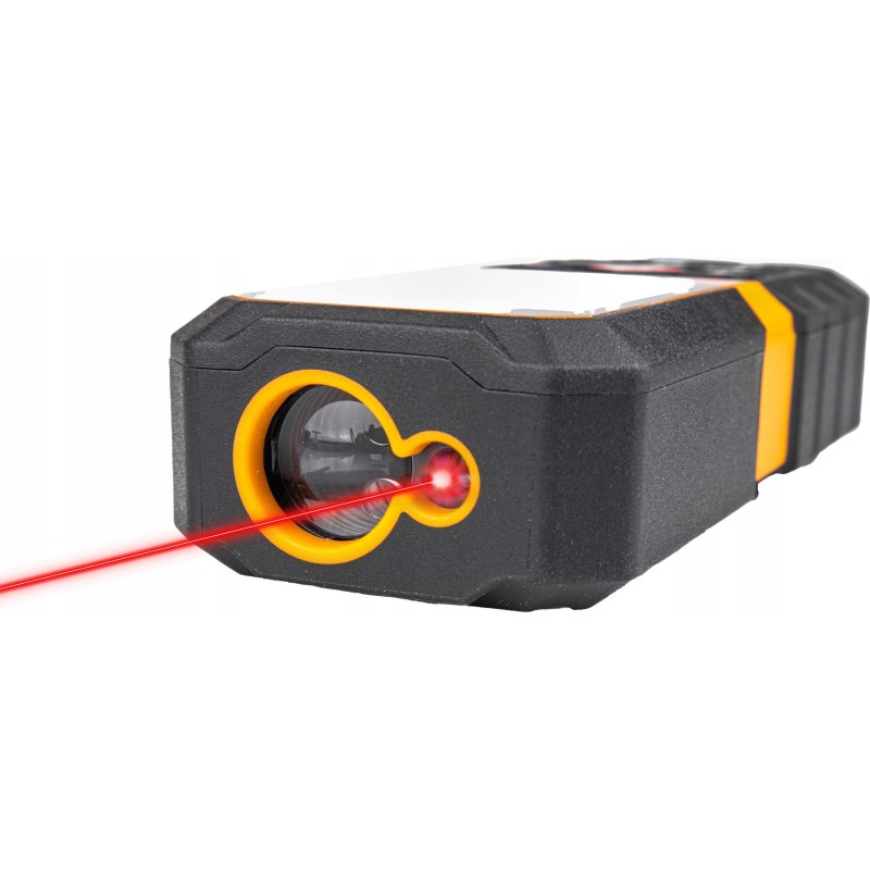 Ein professioneller Laser-Entfernungsmesser, der sich ideal für verschiedene Vermessungsarbeiten eignet. Die Messreichweite beträgt 80 Meter, was die Vermessung langer und breiter Flächen erleichtert. Die Messgenauigkeit des Lasers beträgt ±3 mm und gewährleistet eine Präzision, die die Arbeit erleichtert. Der Entfernungsmesser verfügt über eine Funktion zur Messung in ausgewählten Einheiten, Metern oder Yards. Der integrierte Akku mit USB-C-Anschluss ermöglicht das Aufladen an jedem Ort. Das Gerät ist mit einem LCD-Display ausgestattet, das alle Werte in wenigen Augenblicken berechnet. Die Wasserwaage an der Unterseite des Geräts sorgt zusätzlich für eine präzise Messung. Das aus robusten Materialien gefertigte Gerät ist sturzsicher.