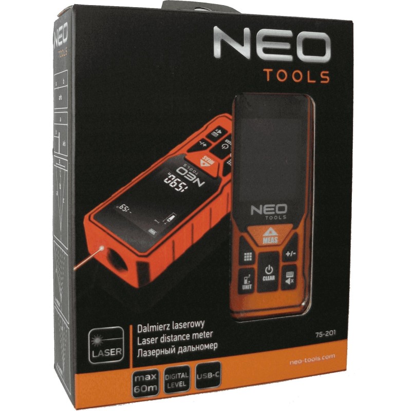 NEO Laser-Entfernungsmesser, Reichweite 0,2–60 m