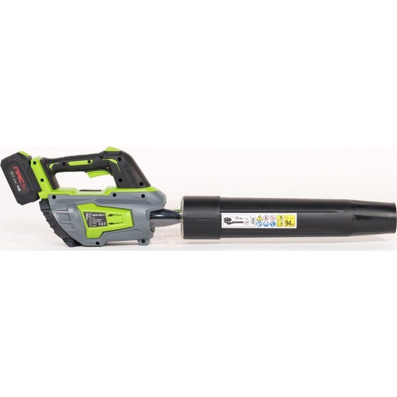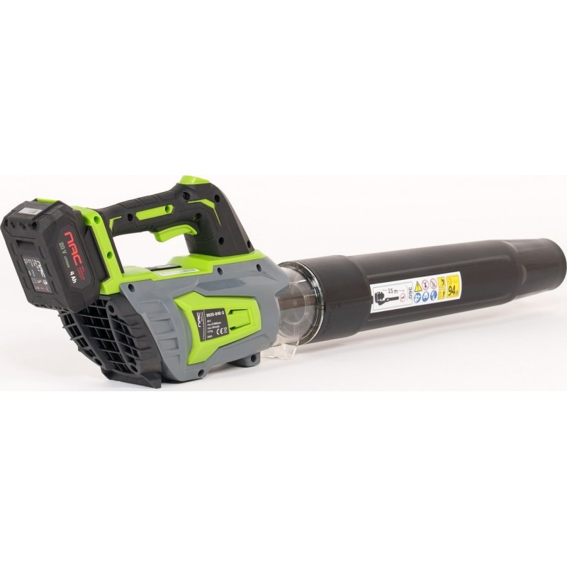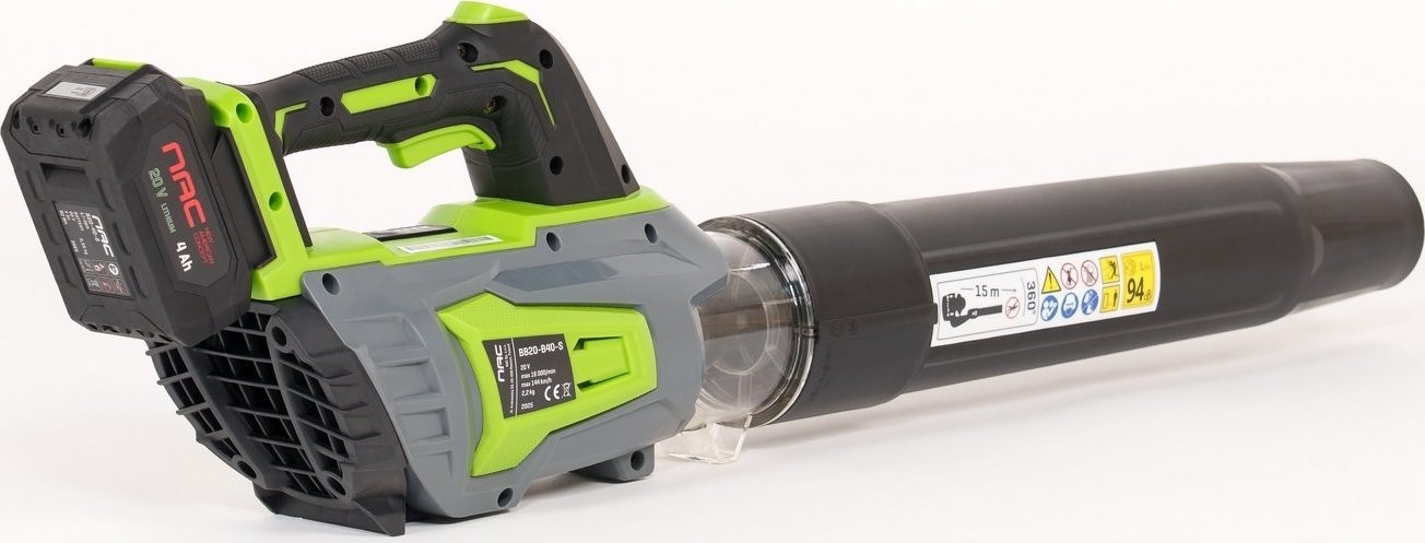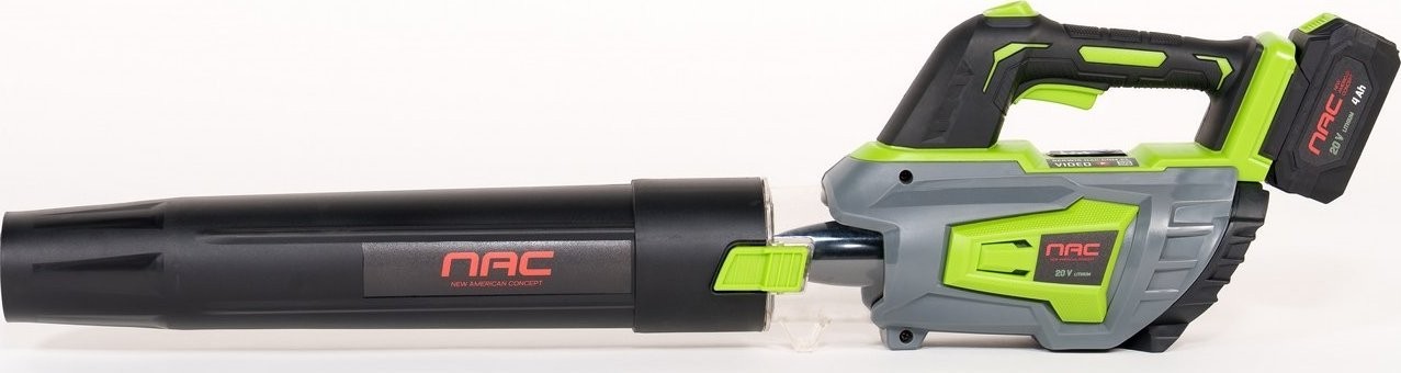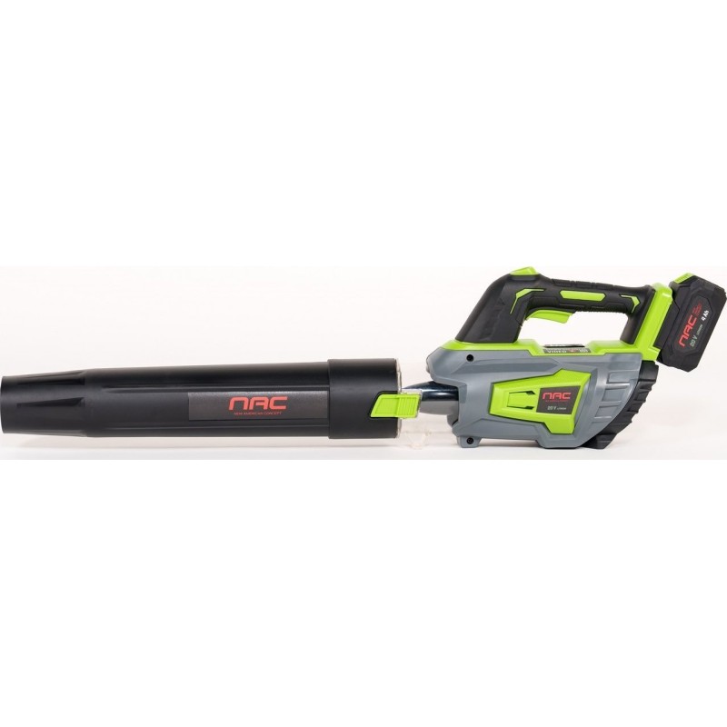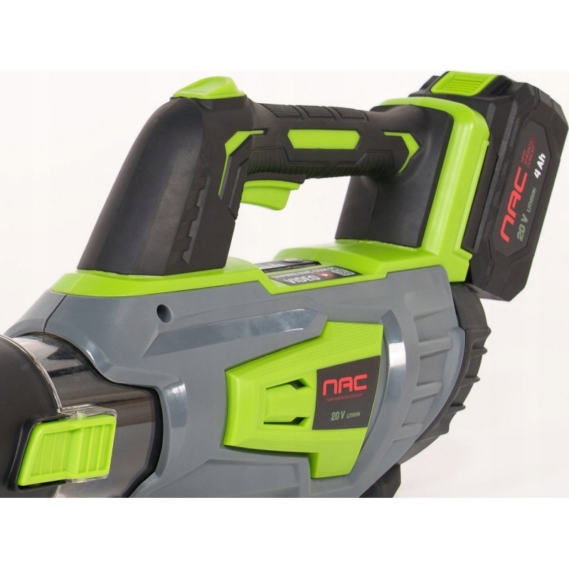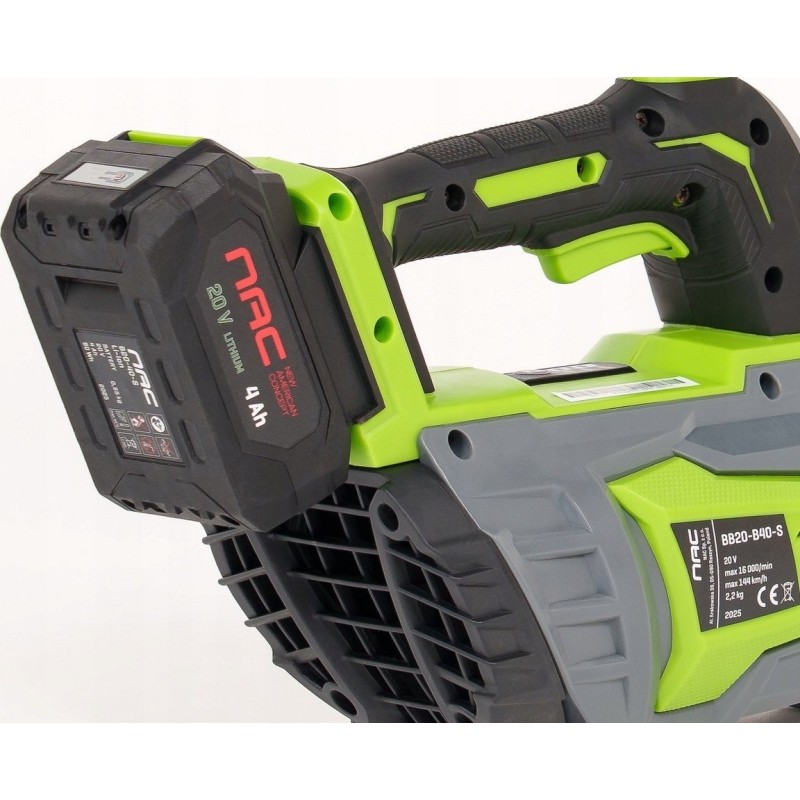 Dank des Lithium-Ionen-Akkus mit einer Kapazität von 4,0 Ah bietet das Laubbläser eine längere Betriebszeit und einen leisen Betrieb. Dieser Akku ist Teil des NAC SERIE S 20V-Systems, wodurch er mit anderen Geräten derselben Serie verwendet werden kann.