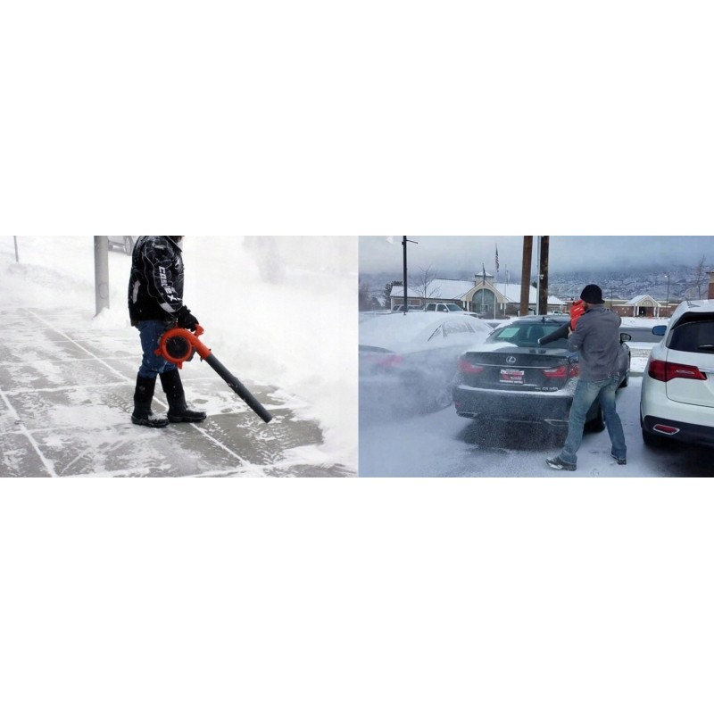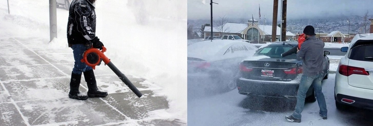 Das Benzin-Laubbläser eignet sich auch hervorragend im Winter zum Schneeräumen von Autos oder vom Hof.
