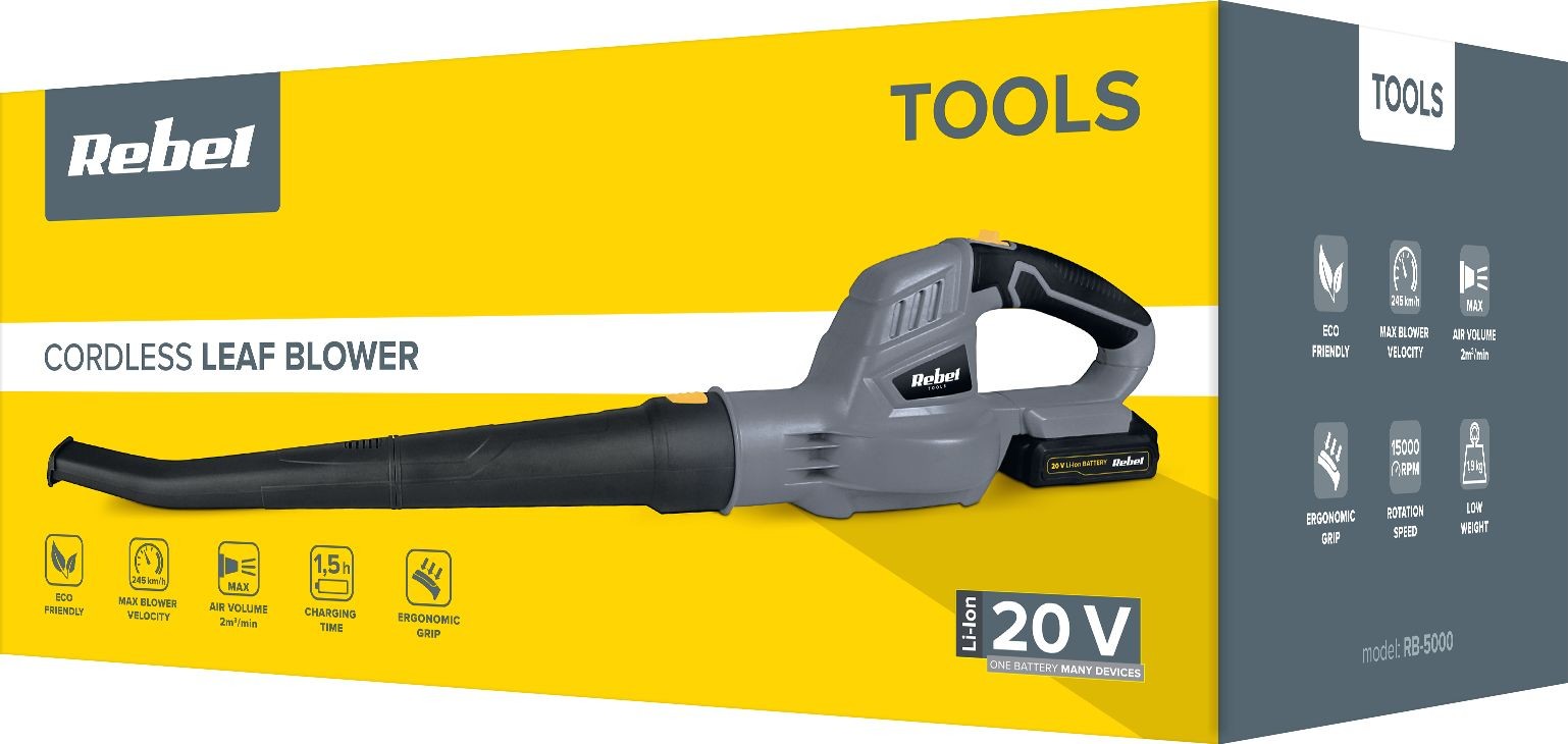 Das Akku-Laubgebläse von Rebel Tools ist ein hervorragendes Werkzeug, das Ihnen bei der Herbstarbeit im Garten gute Dienste leisten wird. Dank einer Luftgeschwindigkeit von 245 km/h entfernen Sie mühelos und schnell Laub, Sandkörner oder Grashalme aus Ihrem Garten. Ein Gewicht von weniger als 2 kg sowie eine ergonomische Konstruktion, die den Arm während der Arbeit nicht belastet, garantieren eine komfortable Handhabung des Geräts.
