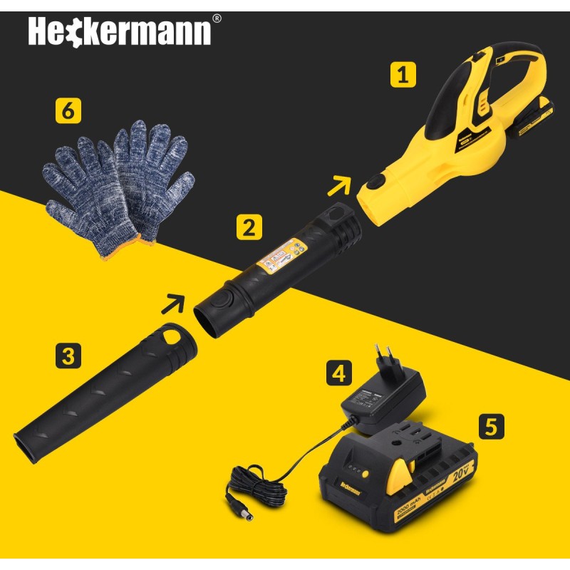 Im Lieferumfang des Laubbläsers sind ein Akku, ein Netzladegerät, eine Verlängerungsdüse sowie Schutzhandschuhe enthalten, was den Komfort und die Sicherheit bei der Arbeit erhöht. Es handelt sich um eine umfassende Lösung, die die Erwartungen jedes Gärtners erfüllt.