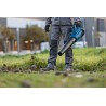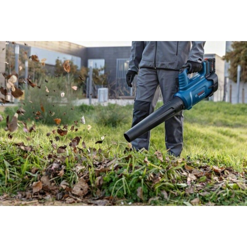 Dank der stufenlosen Drehzahlregelung kann der Benutzer die Ausblasleistung an die jeweilige Aufgabe anpassen, was eine Optimierung der Akkulaufzeit und eine Geräuschreduzierung ermöglicht. Das ergonomische Design und das geringe Gewicht des Laubbläsers (2,8 kg ohne Akku) sorgen für komfortables Arbeiten auch bei längerem Einsatz. Darüber hinaus sorgt der niedrige Geräuschpegel dafür, dass die Arbeit in Wohngebieten nicht störend ist.